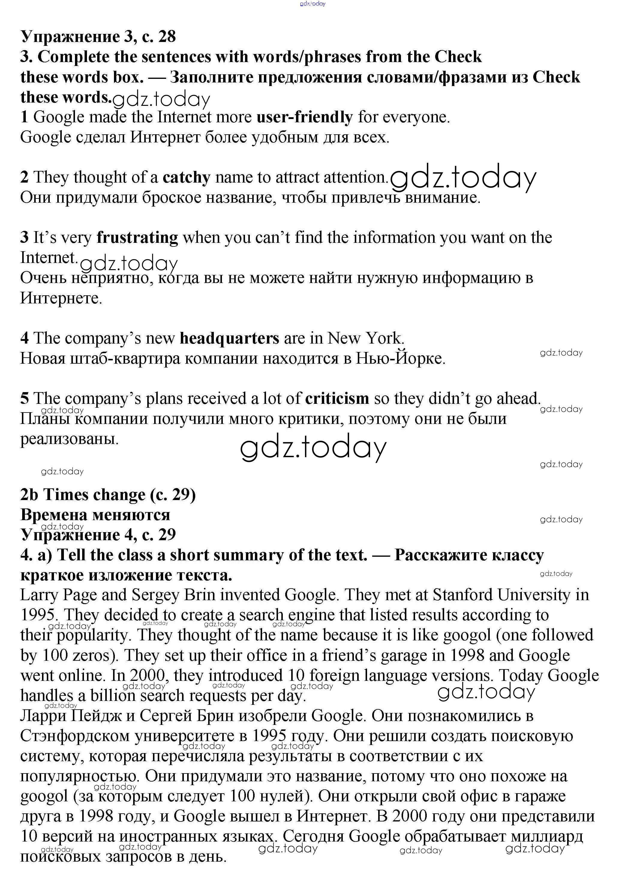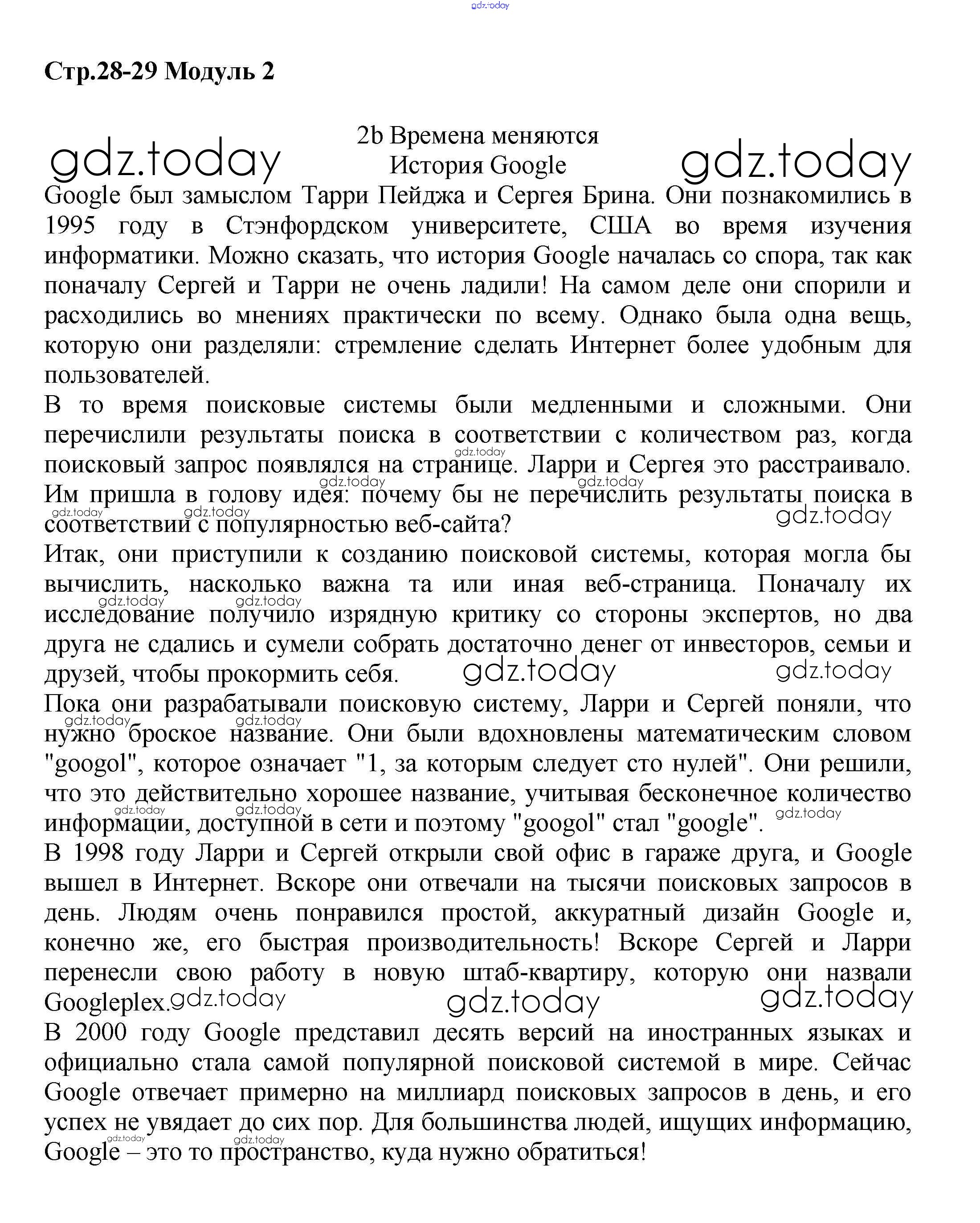 На страницах сайта gdz.today вы найдете учебный и вспомогательный материал, направленный на улучшения знаний школьной программы. ГДЗ - онлайн мир знаний Решение к Module 2 стр.28-29 Учебнику по Английскому языку для 7 класса Баранова, Дули Углубленный уровень Просвещение Starlight 2017