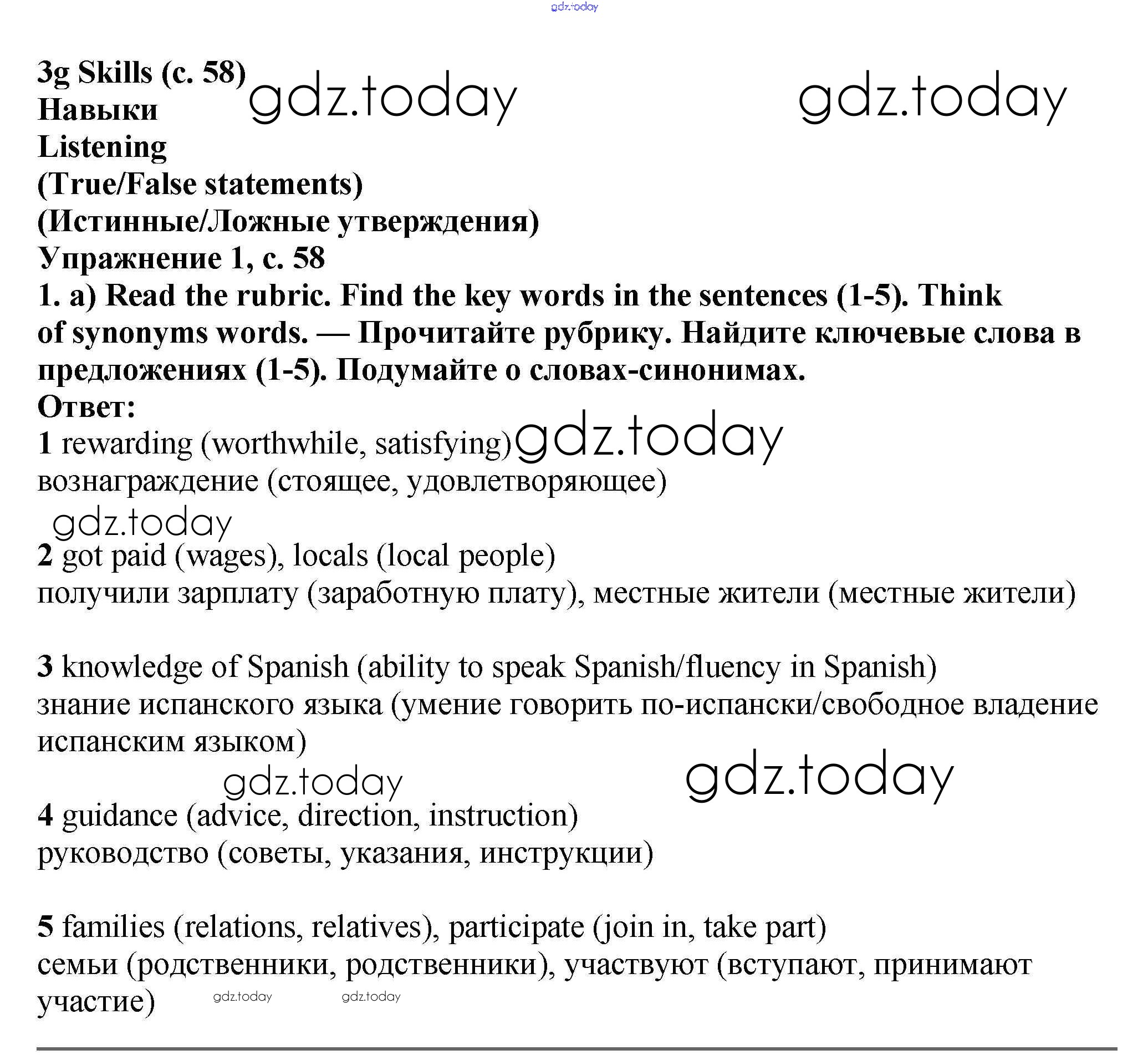 Ответы к Решение к Module 3 стр.58-59 Учебнику по Английскому языку для 7 класса Баранова, Дули Углубленный уровень Просвещение Starlight 2017