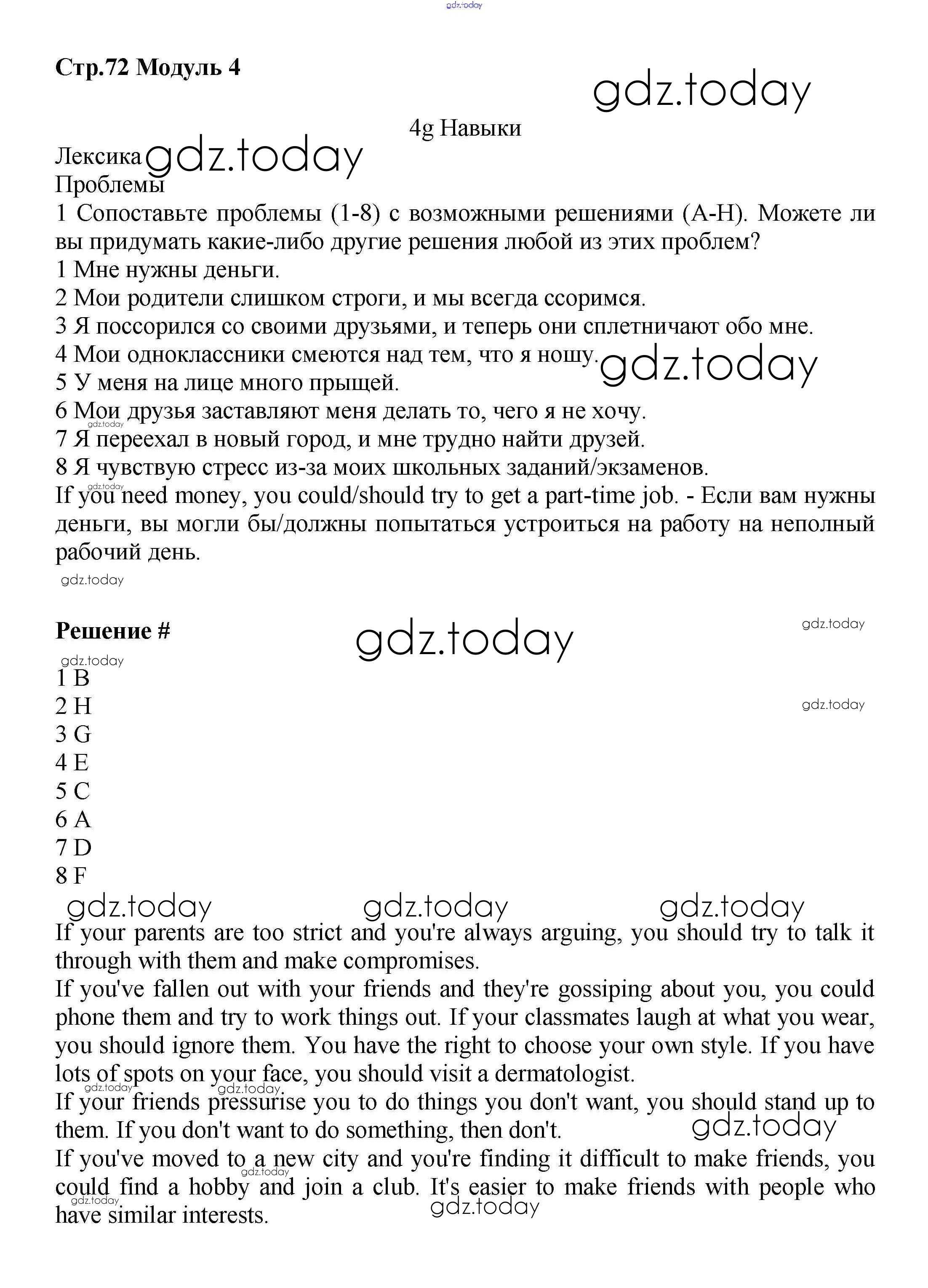 Ответы к Решение к Module 4 стр.72 Учебнику по Английскому языку для 7 класса Баранова, Дули Углубленный уровень Просвещение Starlight 2017