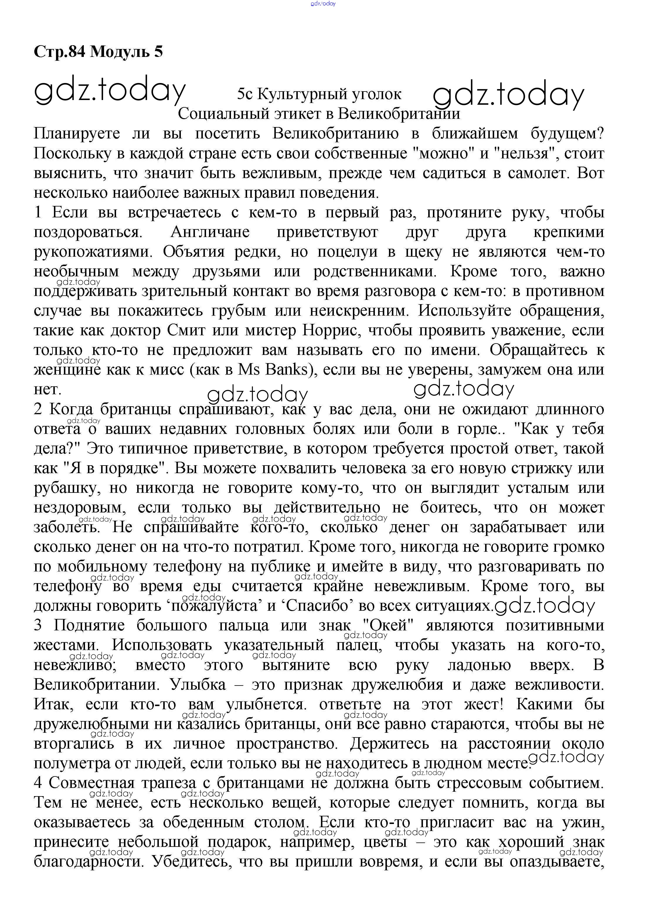 Ответы к Решение к Module 5 стр.84 Учебнику по Английскому языку для 7 класса Баранова, Дули Углубленный уровень Просвещение Starlight 2017