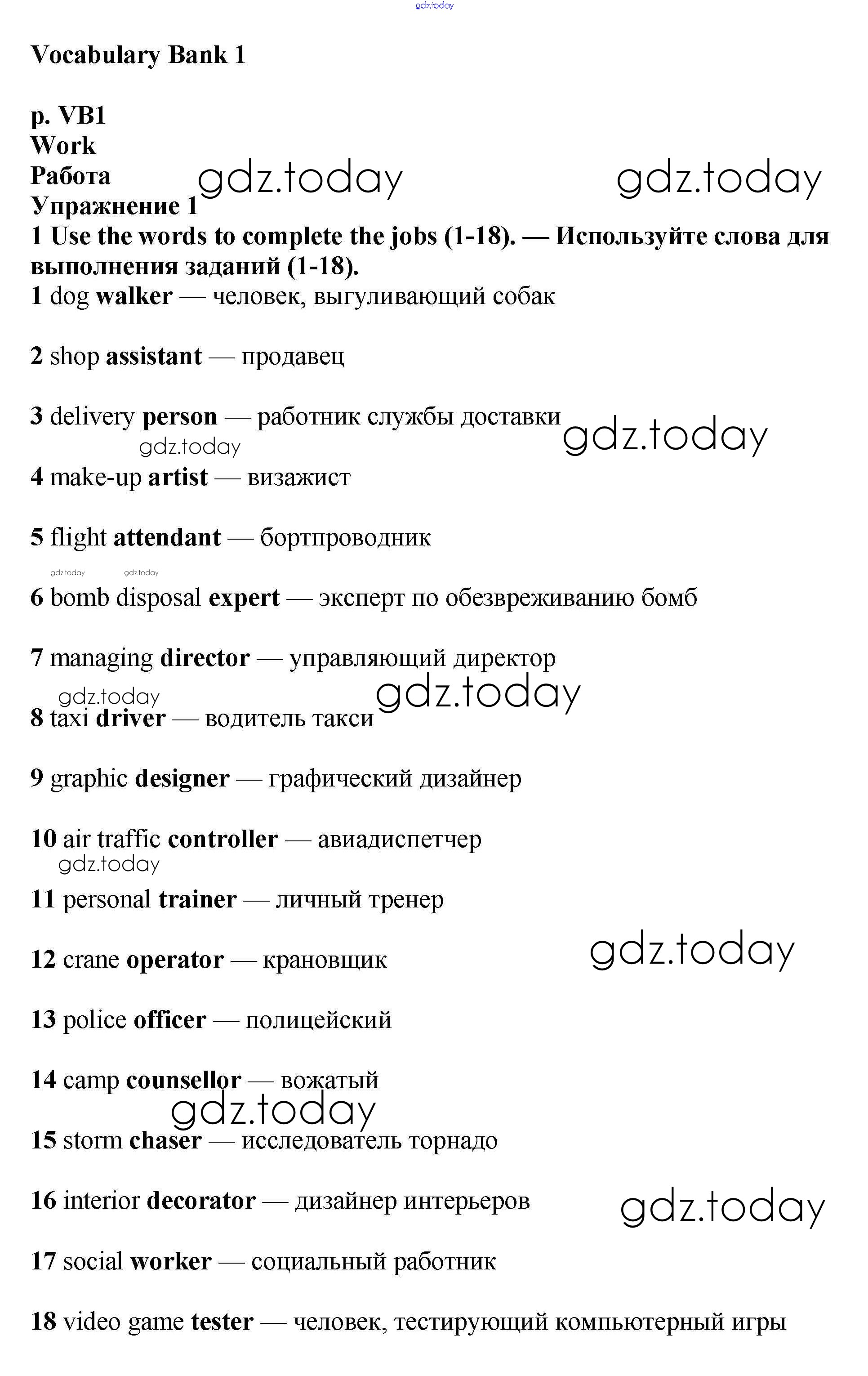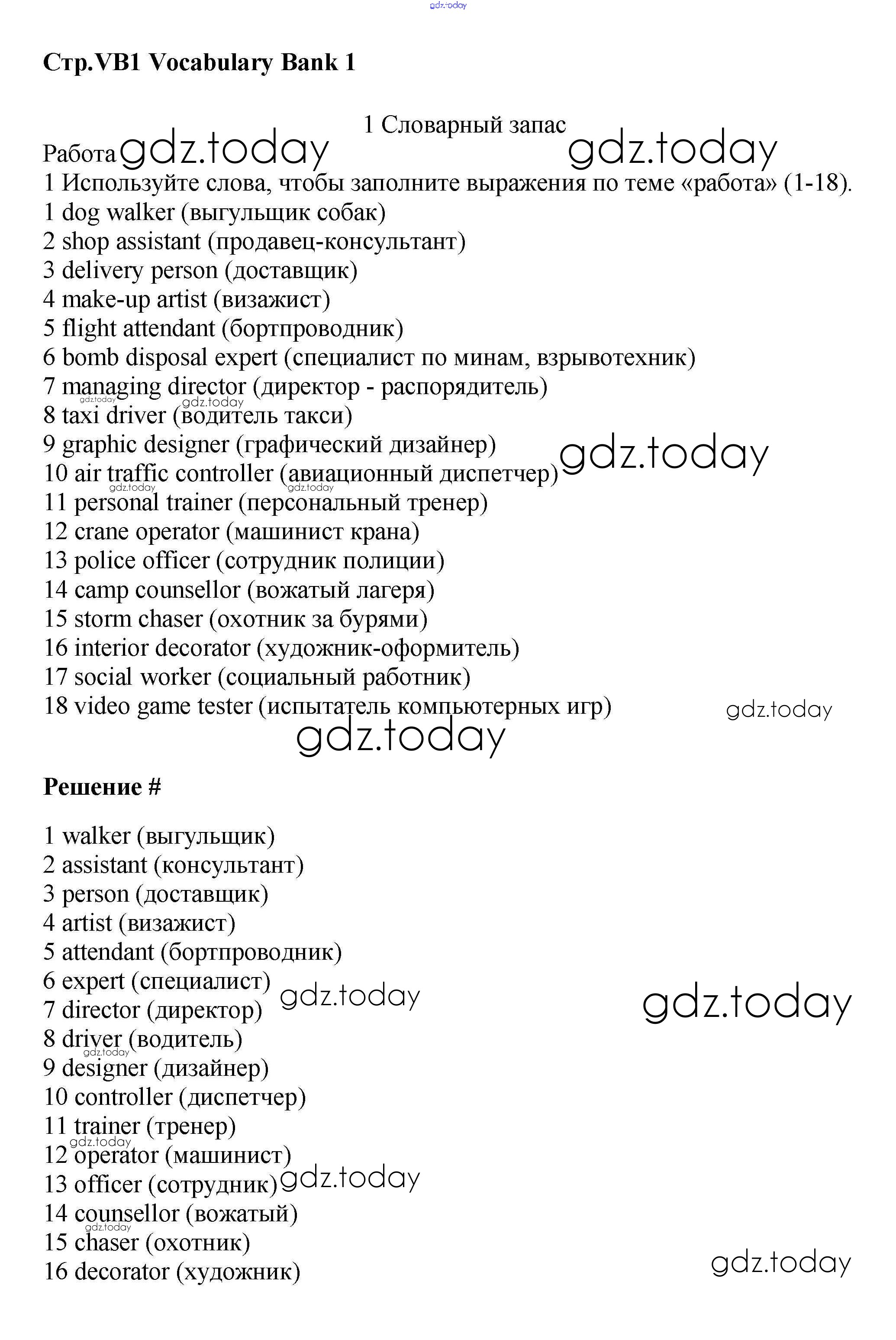 Ответы к Решение к Vocabulary Bank VB1 Учебнику по Английскому языку для 7 класса Баранова, Дули Углубленный уровень Просвещение Starlight 2017