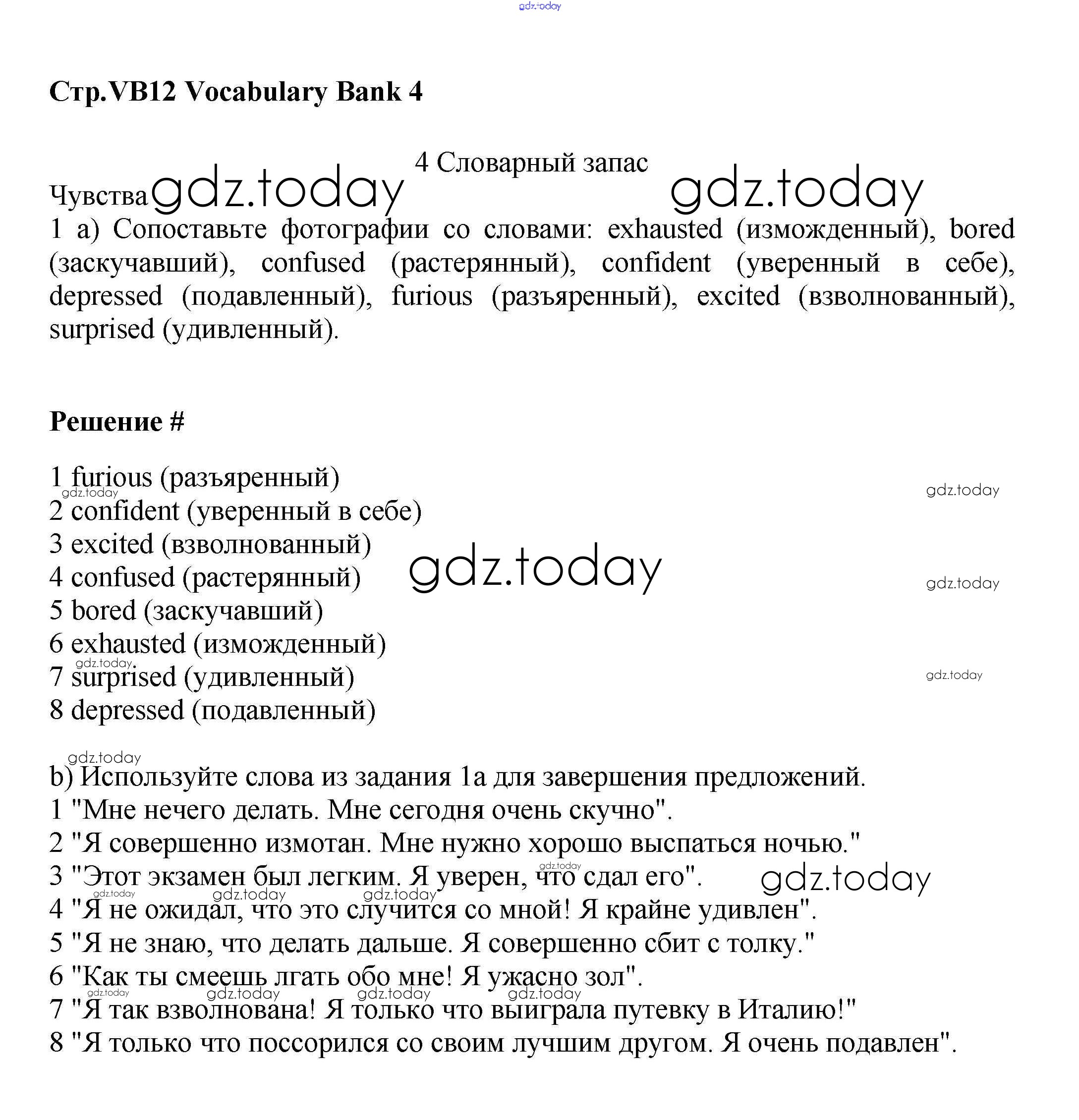 Ответы к Решение к Vocabulary Bank VB12 Учебнику по Английскому языку для 7 класса Баранова, Дули Углубленный уровень Просвещение Starlight 2017