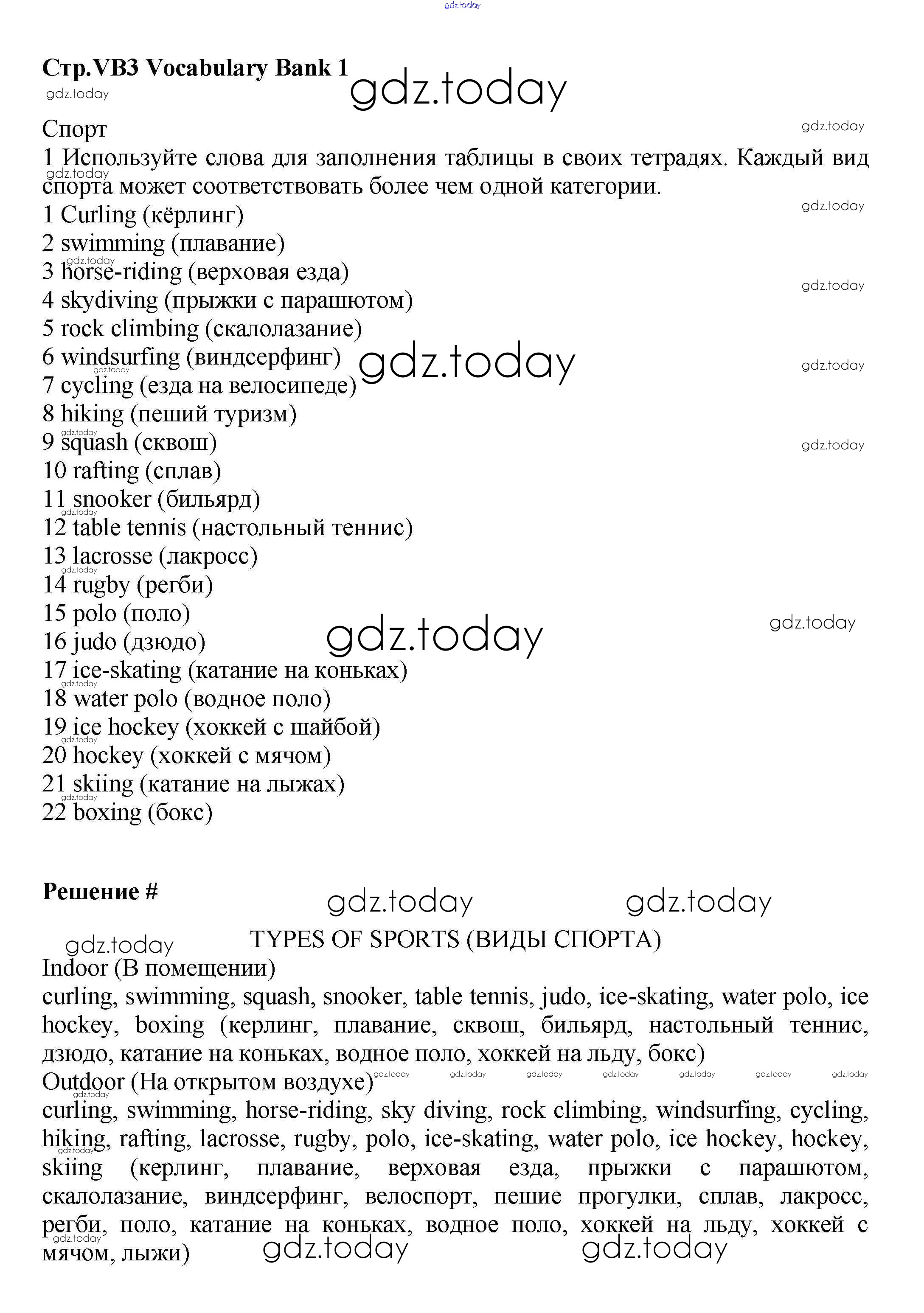Ответы к Решение к Vocabulary Bank VB3 Учебнику по Английскому языку для 7 класса Баранова, Дули Углубленный уровень Просвещение Starlight 2017