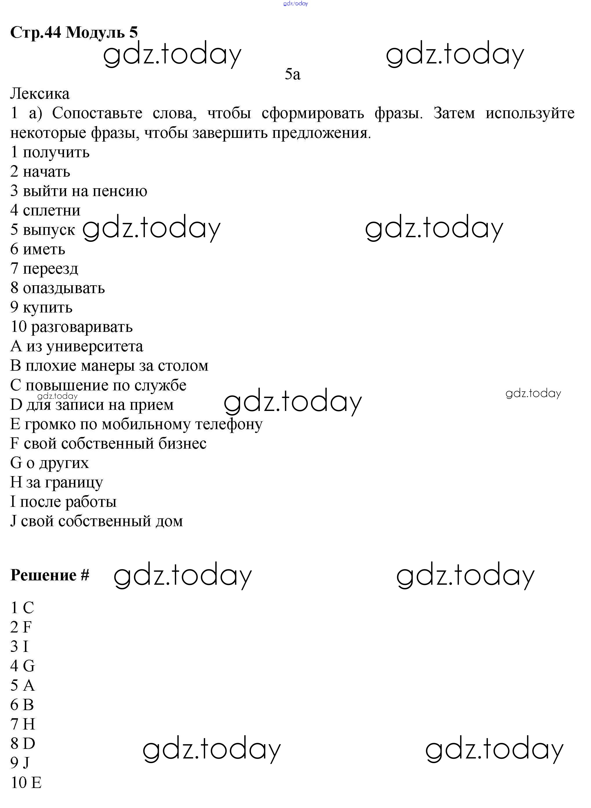 Ответы к Страницы (решение) 44 Рабочей тетради по Английскому языку для 7 класса Баранова, Дули Углубленный уровень Просвещение Starlight 2017