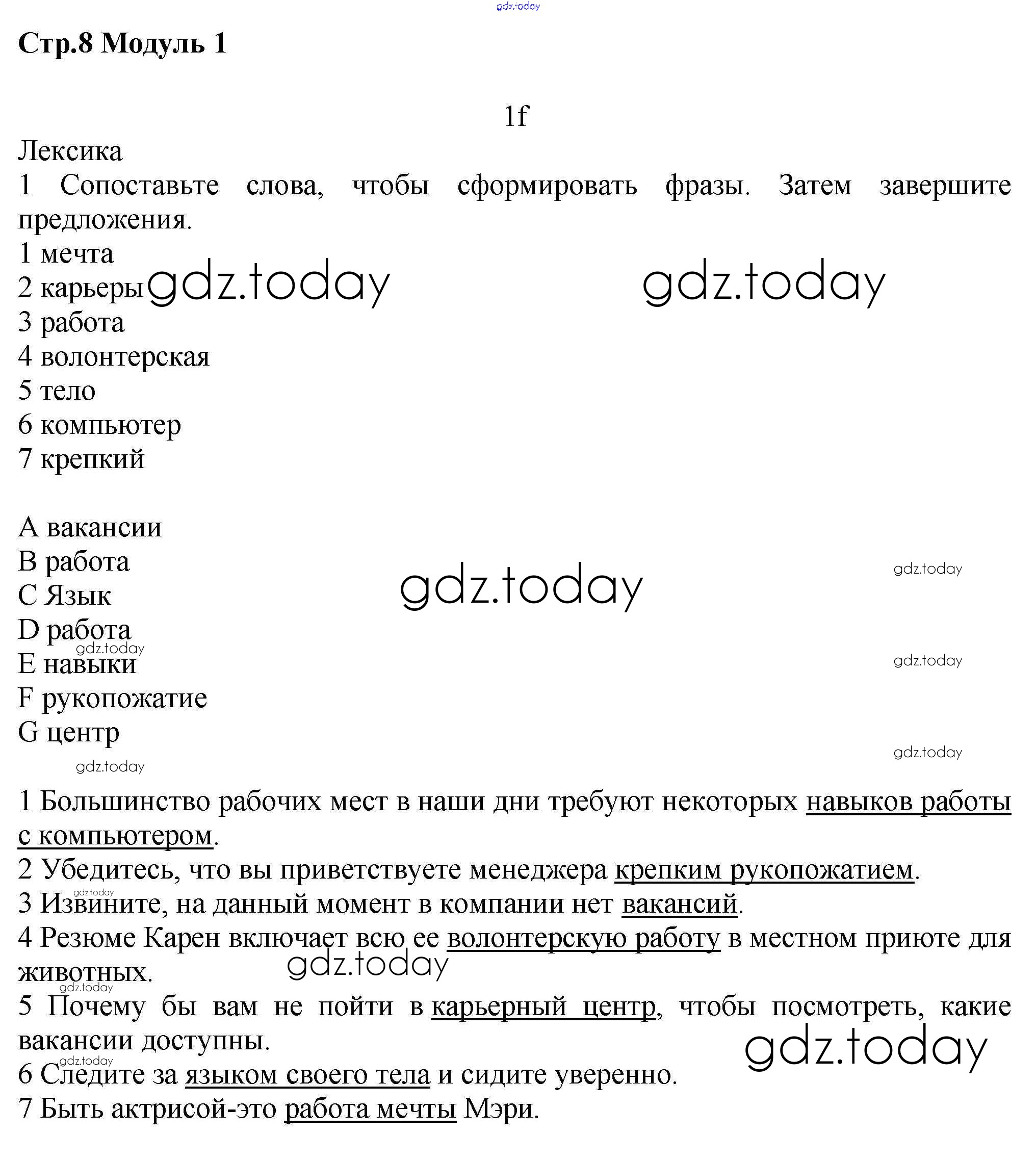 Ответы к Страницы (решение) 8 Рабочей тетради по Английскому языку для 7 класса Баранова, Дули Углубленный уровень Просвещение Starlight 2017