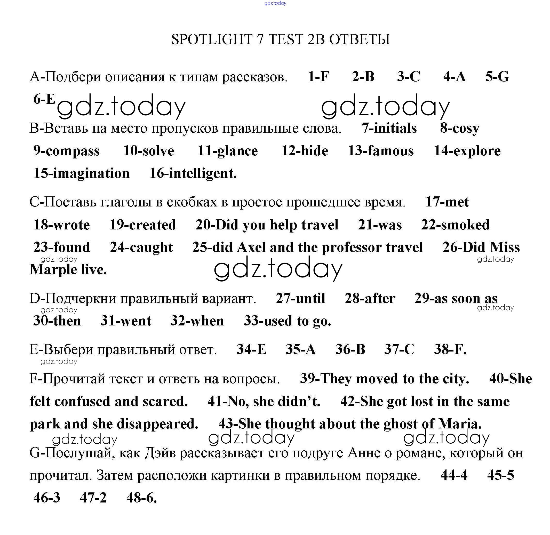 Ответы к Решение. Тест 2 2 Контрольным заданиям по Английскому языку для 7 класса Ваулина, Дули Просвещение Spotlight 2015