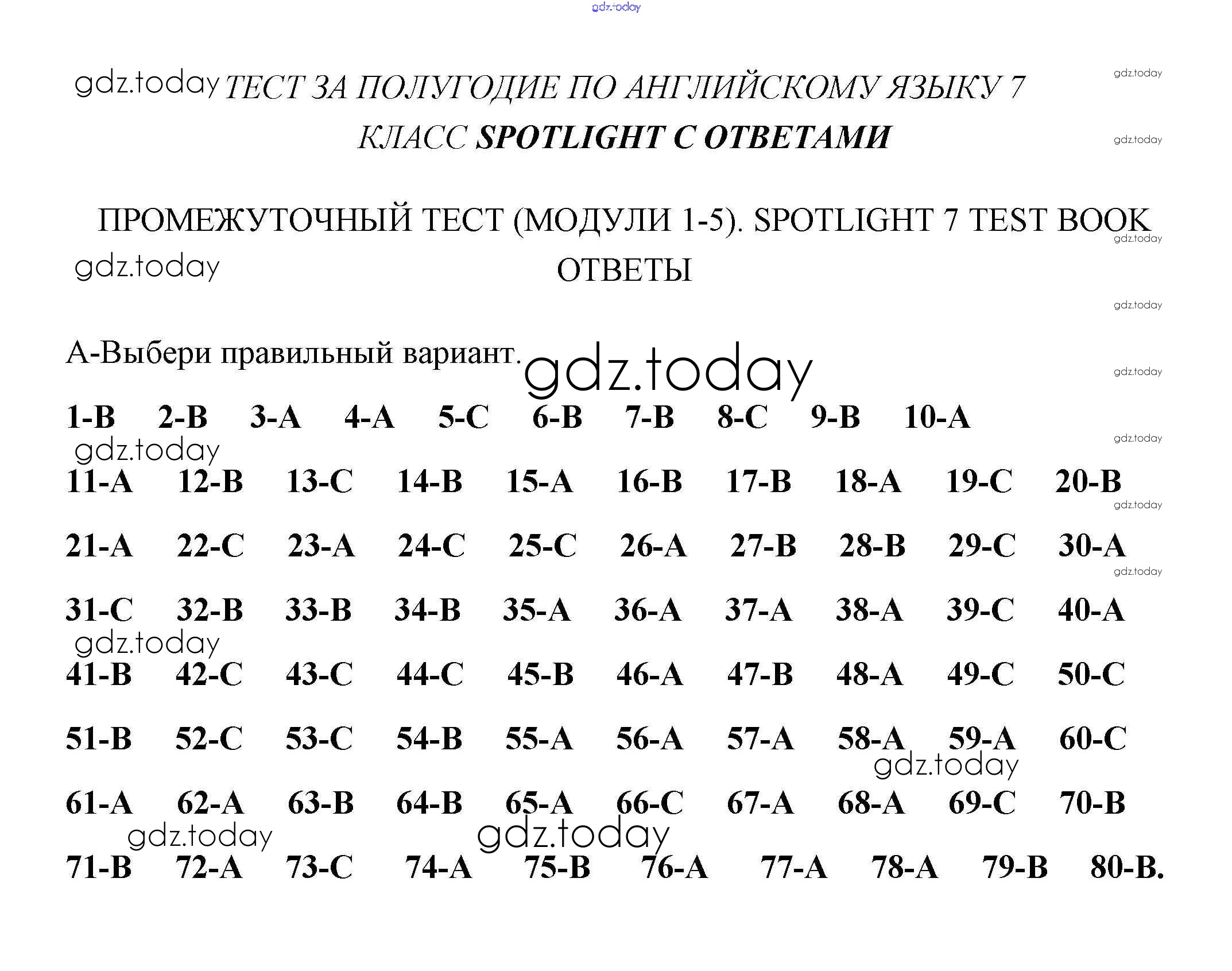 Ответы к Решение. Промежуточный тест 1 Контрольным заданиям по Английскому языку для 7 класса Ваулина, Дули Просвещение Spotlight 2015