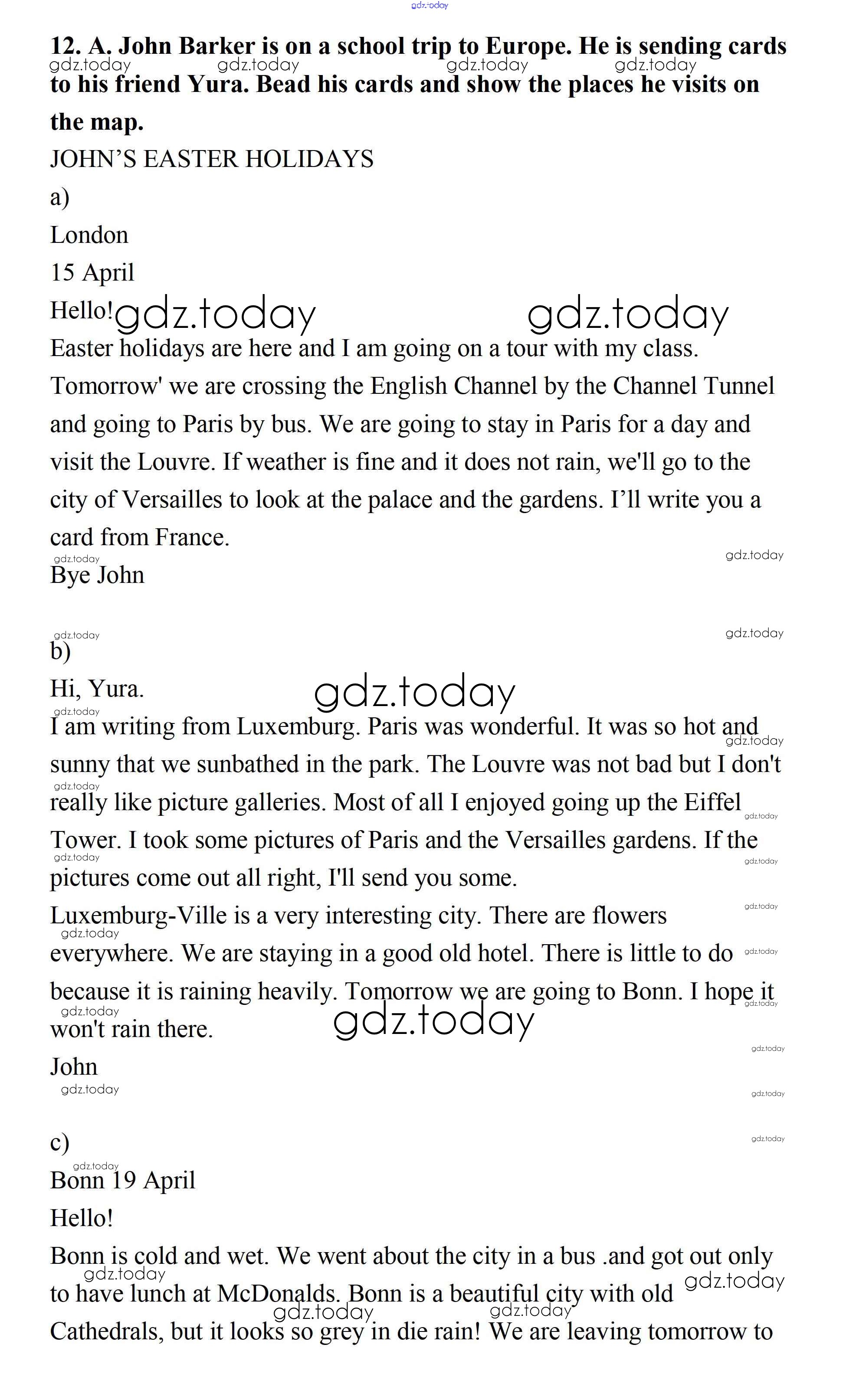 На страницах сайта gdz.today вы найдете учебный и вспомогательный материал, направленный на улучшения знаний школьной программы. ГДЗ - онлайн мир знаний Секция 3 Решение к Unit 5 12 Учебнику по Английскому языку для 7 класса Афанасьева, Михеева Дрофа Новый курс 2015