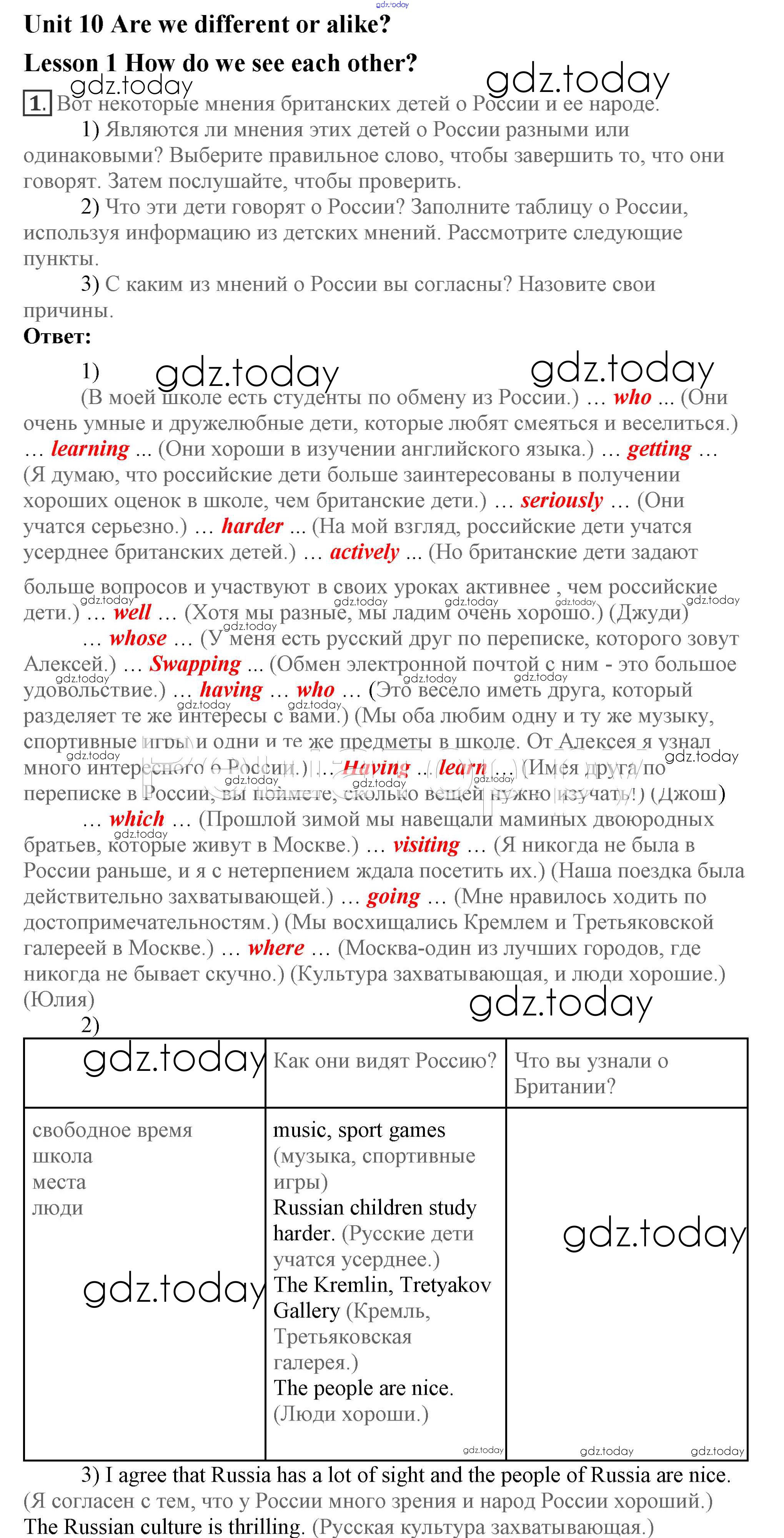 На страницах сайта gdz.today вы найдете учебный и вспомогательный материал, направленный на улучшения знаний школьной программы. ГДЗ - онлайн мир знаний Lesson 1 Решение к Unit 10. Are we different or alike? 1 Учебнику по Английскому языку для 7 класса Кузовлев, Лапа Просвещение УМК 2015