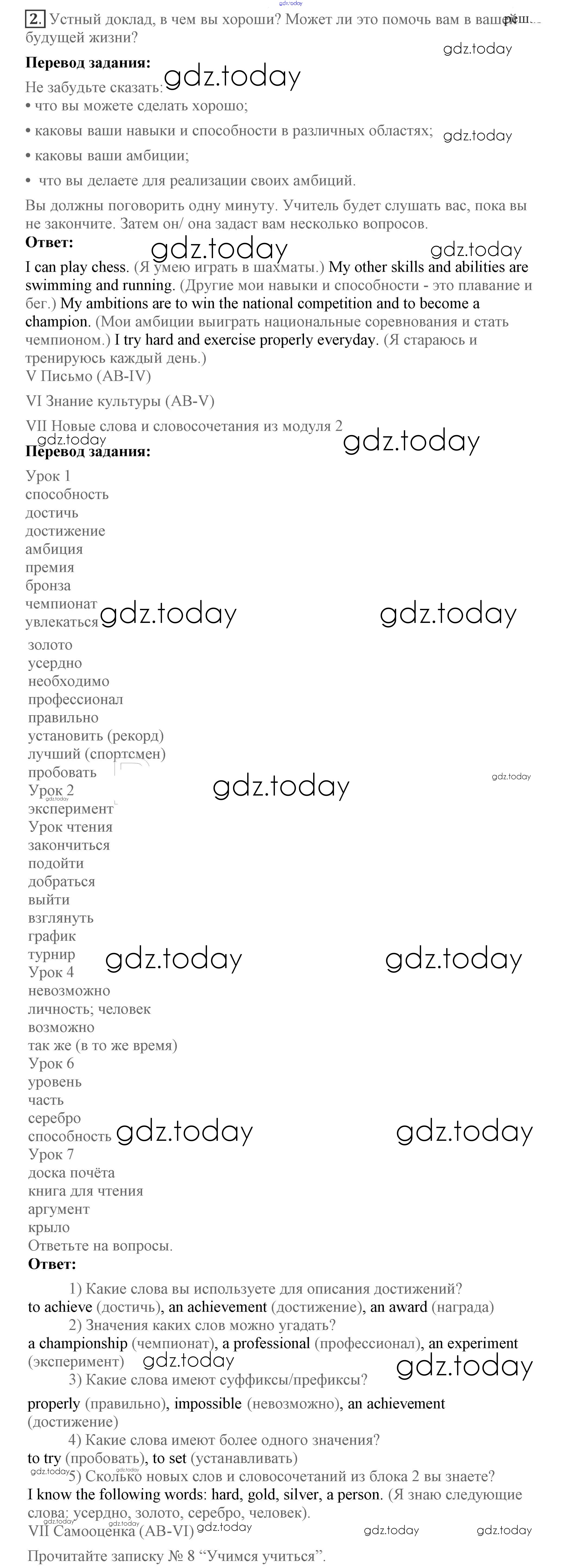 Ответы к Lesson 8 Решение к Unit 2. What are you good at? 2 Учебнику по Английскому языку для 7 класса Кузовлев, Лапа Просвещение УМК 2015