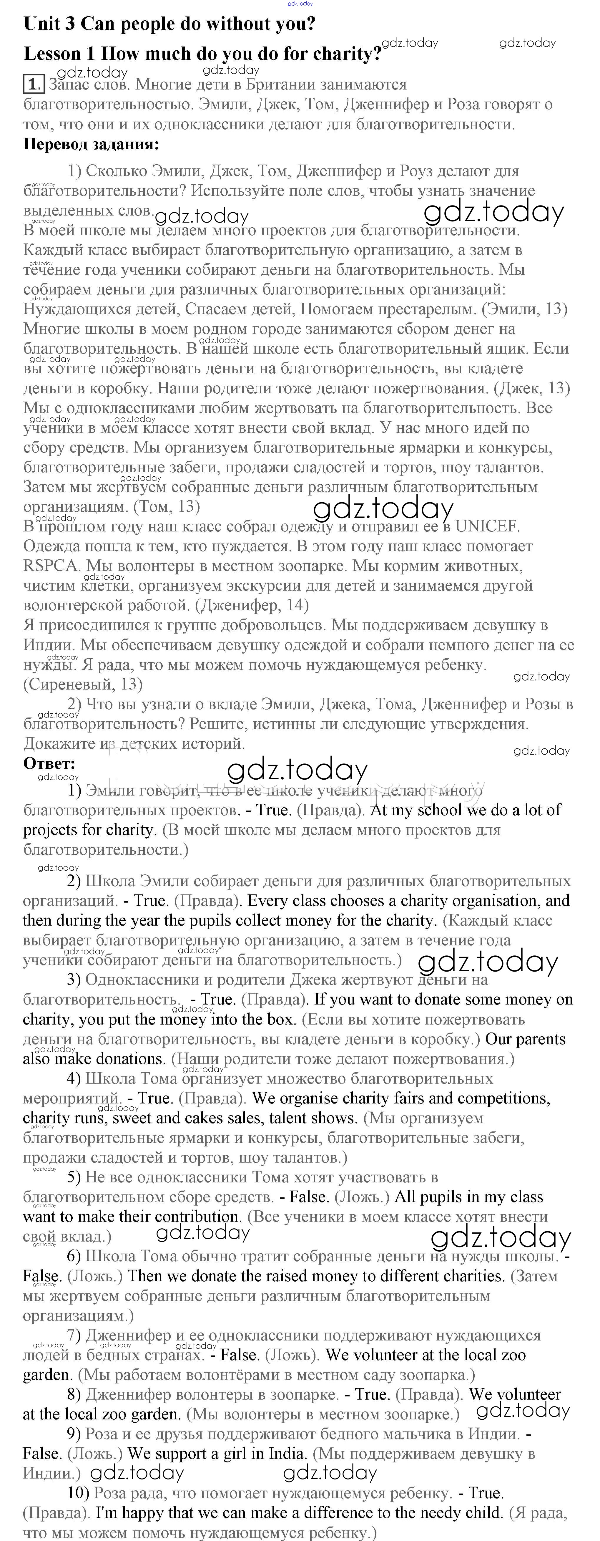 Ответы к Lesson 1 Решение к Unit 3. Can people do without you? 1 Учебнику по Английскому языку для 7 класса Кузовлев, Лапа Просвещение УМК 2015