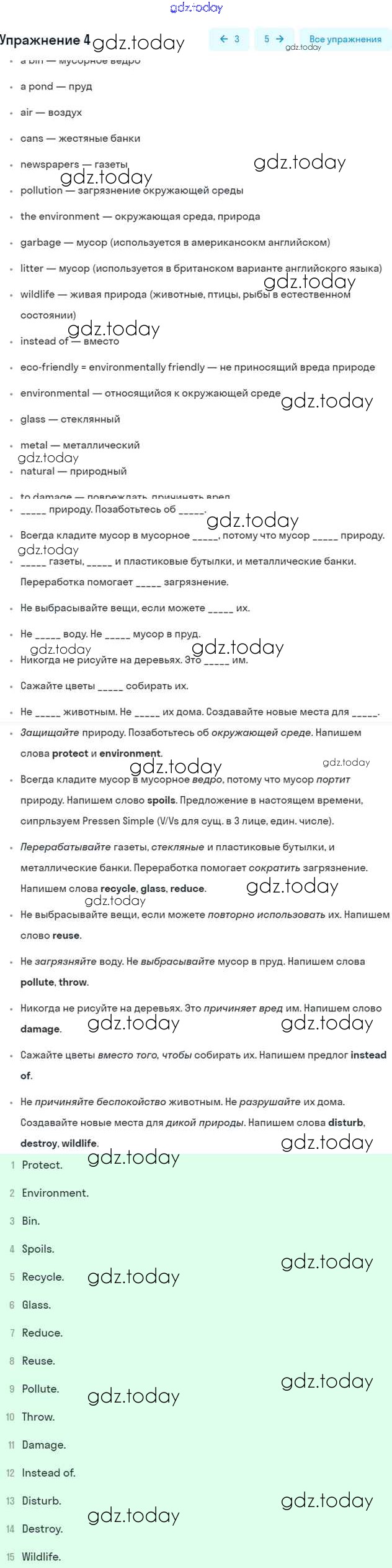 На страницах сайта gdz.today вы найдете учебный и вспомогательный материал, направленный на улучшения знаний школьной программы. ГДЗ - онлайн мир знаний Lesson 1 Решение к Unit 4. Are you a friend of the planet? 4 Учебнику по Английскому языку для 7 класса Кузовлев, Лапа Просвещение УМК 2015
