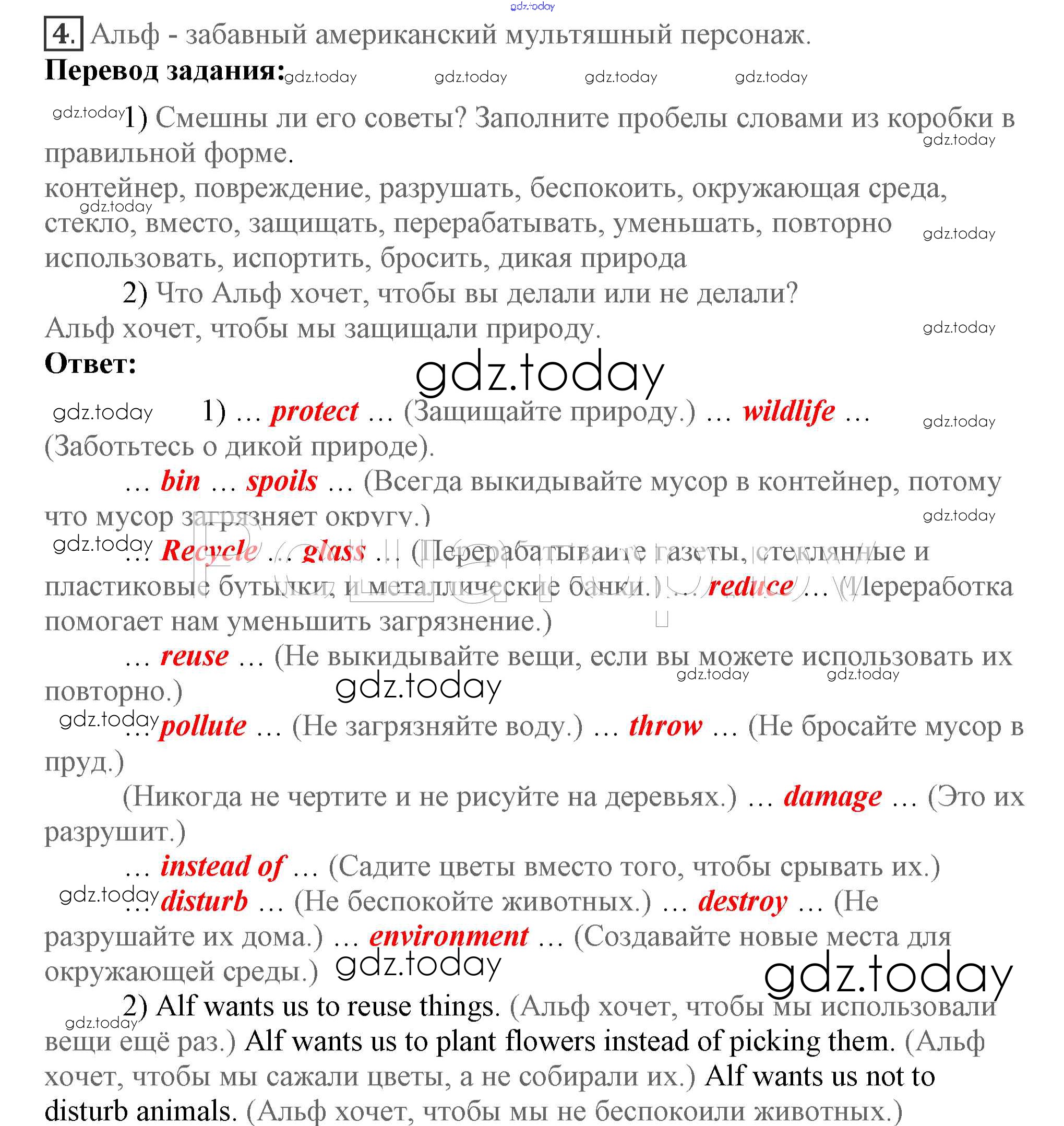 Ответы к Lesson 1 Решение к Unit 4. Are you a friend of the planet? 4 Учебнику по Английскому языку для 7 класса Кузовлев, Лапа Просвещение УМК 2015