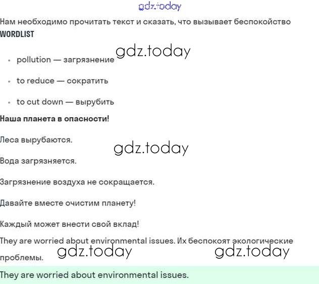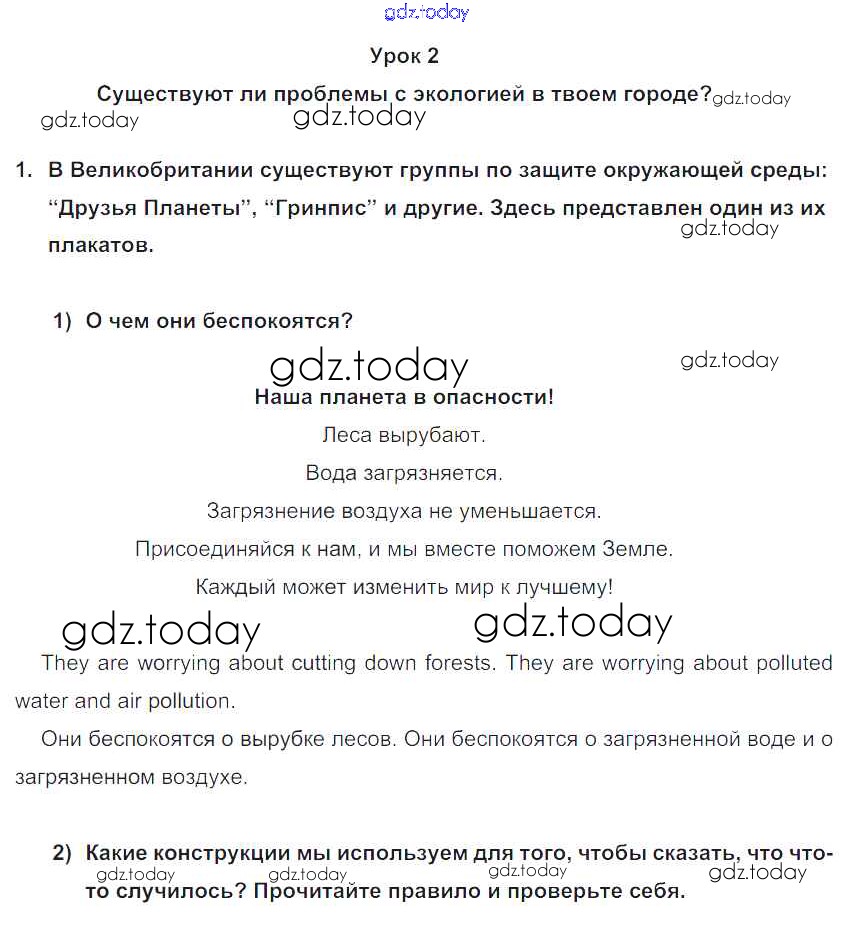 На страницах сайта gdz.today вы найдете учебный и вспомогательный материал, направленный на улучшения знаний школьной программы. ГДЗ - онлайн мир знаний Lesson 2 Решение к Unit 4. Are you a friend of the planet? 1 Учебнику по Английскому языку для 7 класса Кузовлев, Лапа Просвещение УМК 2015