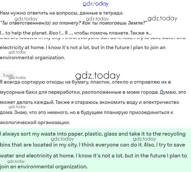 На страницах сайта gdz.today вы найдете учебный и вспомогательный материал, направленный на улучшения знаний школьной программы. ГДЗ - онлайн мир знаний Lesson 3 Решение к Unit 4. Are you a friend of the planet? 3 Учебнику по Английскому языку для 7 класса Кузовлев, Лапа Просвещение УМК 2015