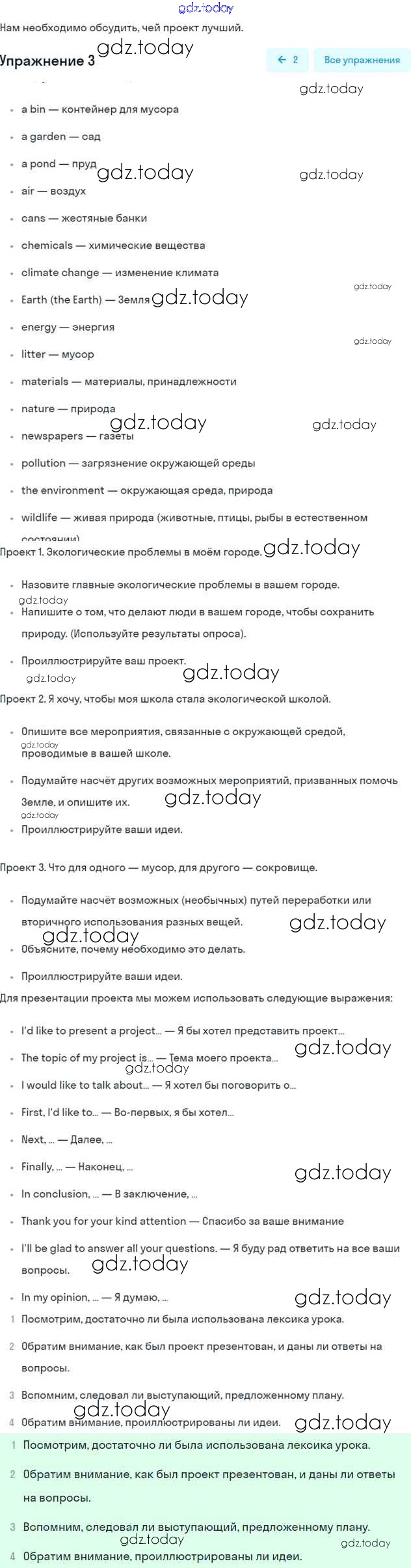 На страницах сайта gdz.today вы найдете учебный и вспомогательный материал, направленный на улучшения знаний школьной программы. ГДЗ - онлайн мир знаний Lesson 6 Решение к Unit 4. Are you a friend of the planet? 3 Учебнику по Английскому языку для 7 класса Кузовлев, Лапа Просвещение УМК 2015