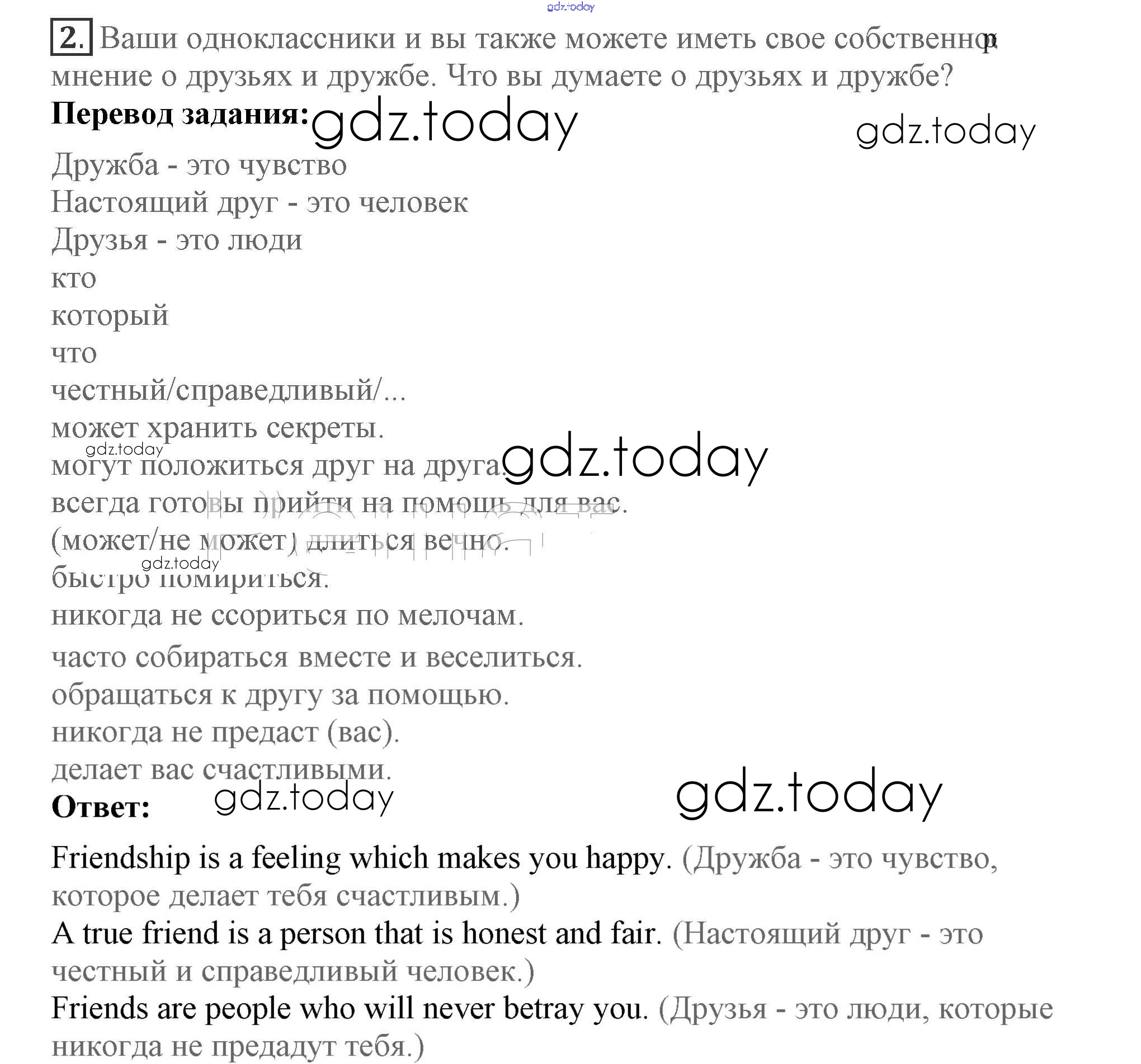 На страницах сайта gdz.today вы найдете учебный и вспомогательный материал, направленный на улучшения знаний школьной программы. ГДЗ - онлайн мир знаний Lesson 2 Решение к Unit 5. Are you happy with your friends? 2 Учебнику по Английскому языку для 7 класса Кузовлев, Лапа Просвещение УМК 2015