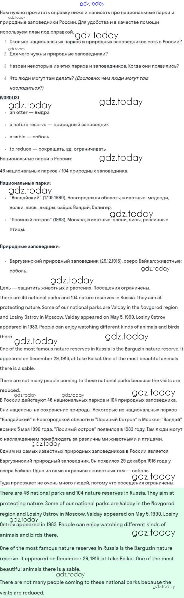 На страницах сайта gdz.today вы найдете учебный и вспомогательный материал, направленный на улучшения знаний школьной программы. ГДЗ - онлайн мир знаний Lesson 5 Решение к Unit 4. Are you a friend of the planet? 3 Учебнику по Английскому языку для 7 класса Кузовлев, Лапа Просвещение УМК 2015