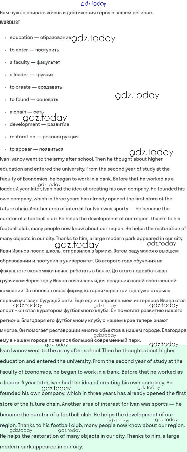 На страницах сайта gdz.today вы найдете учебный и вспомогательный материал, направленный на улучшения знаний школьной программы. ГДЗ - онлайн мир знаний Lesson 8 Решение к Unit 7. Do you have an example to follow? 5 Учебнику по Английскому языку для 7 класса Кузовлев, Лапа Просвещение УМК 2015