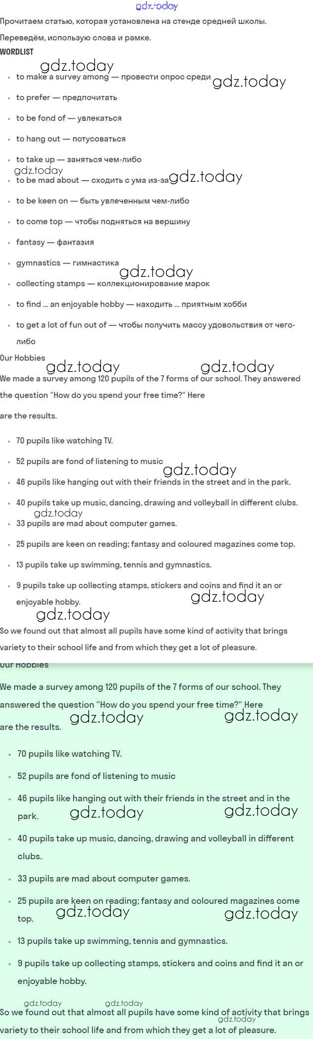 Ответы к Lesson 3 Решение к Unit 8. How do you spend your free time? 4 Учебнику по Английскому языку для 7 класса Кузовлев, Лапа Просвещение УМК 2015