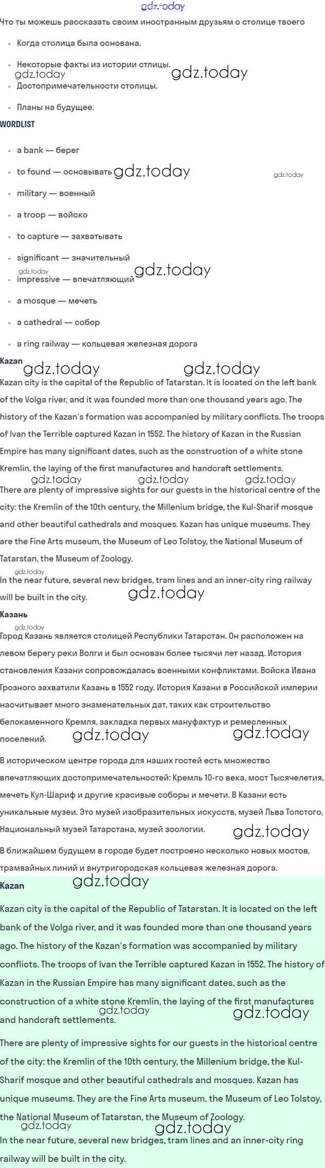 На страницах сайта gdz.today вы найдете учебный и вспомогательный материал, направленный на улучшения знаний школьной программы. ГДЗ - онлайн мир знаний Lesson 8 Решение к Unit 9. What are the most famous sights of your counry? 5 Учебнику по Английскому языку для 7 класса Кузовлев, Лапа Просвещение УМК 2015