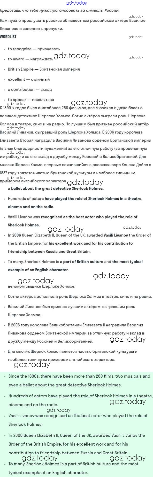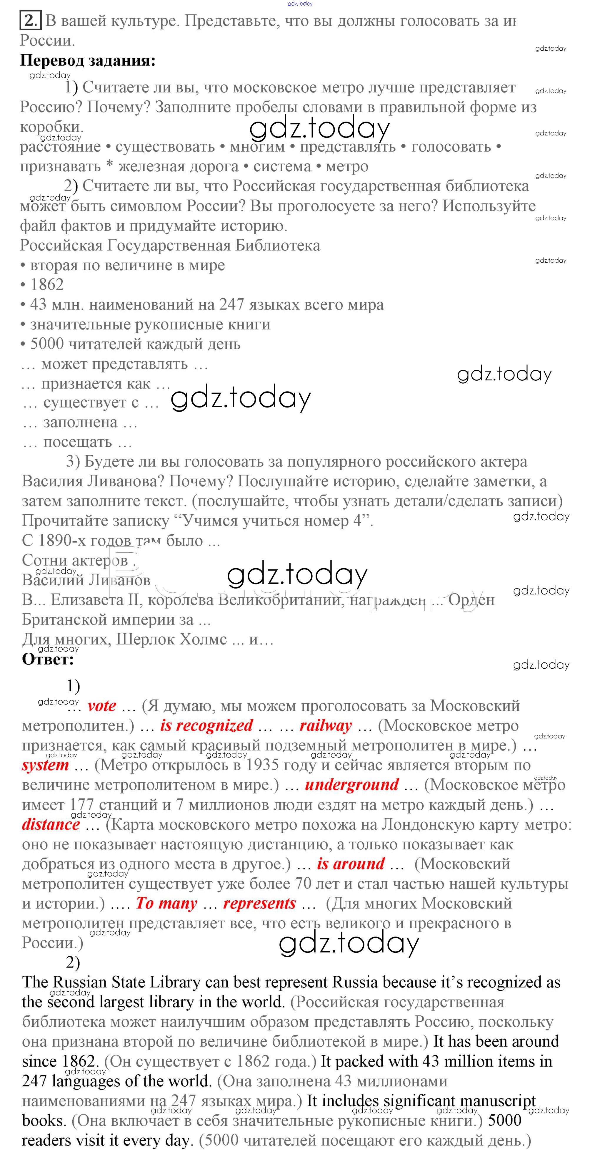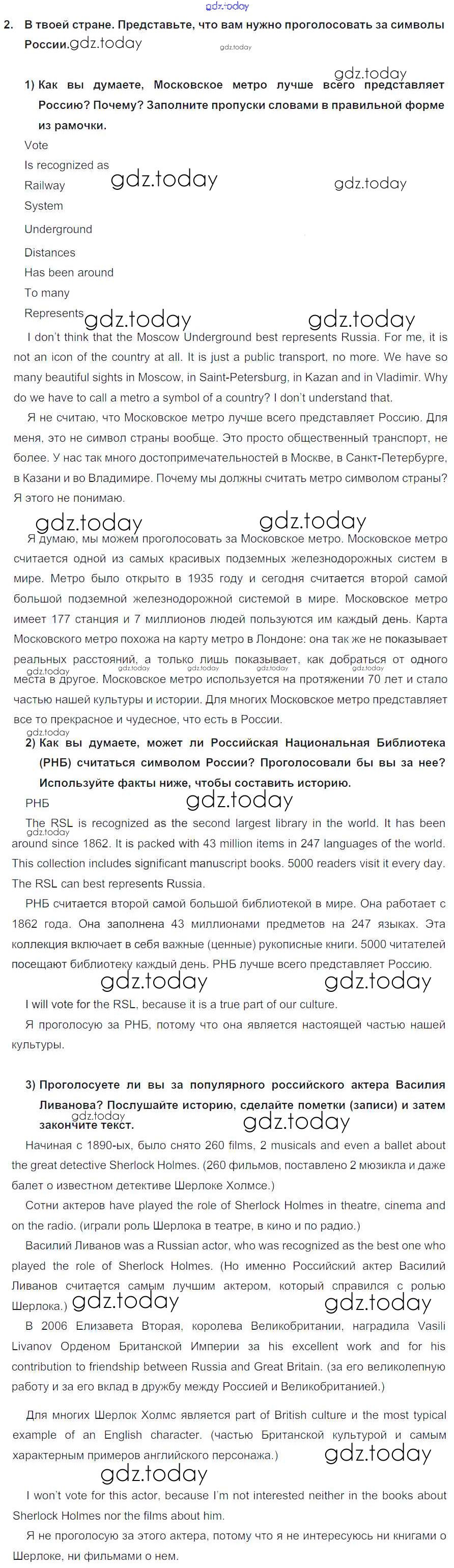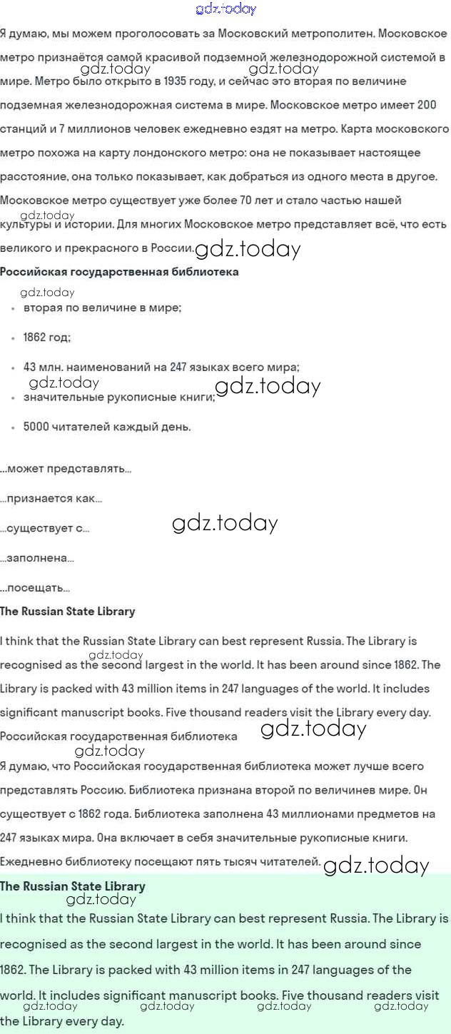 На страницах сайта gdz.today вы найдете учебный и вспомогательный материал, направленный на улучшения знаний школьной программы. ГДЗ - онлайн мир знаний Lesson 1 Решение к Unit 6. What is best about your country? 2 Учебнику по Английскому языку для 7 класса Кузовлев, Лапа Просвещение УМК 2015