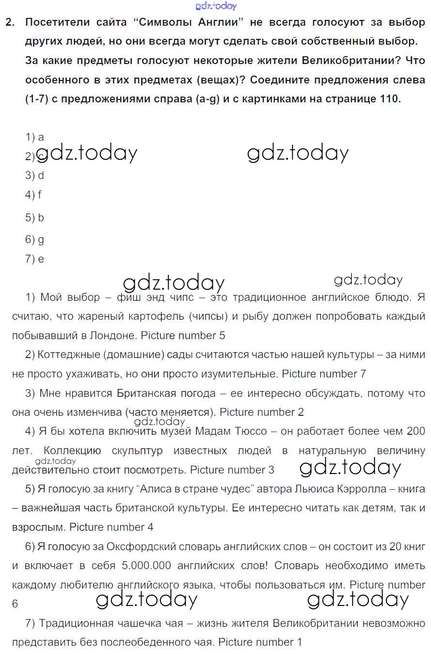 На страницах сайта gdz.today вы найдете учебный и вспомогательный материал, направленный на улучшения знаний школьной программы. ГДЗ - онлайн мир знаний Lesson 2 Решение к Unit 6. What is best about your country? 2 Учебнику по Английскому языку для 7 класса Кузовлев, Лапа Просвещение УМК 2015