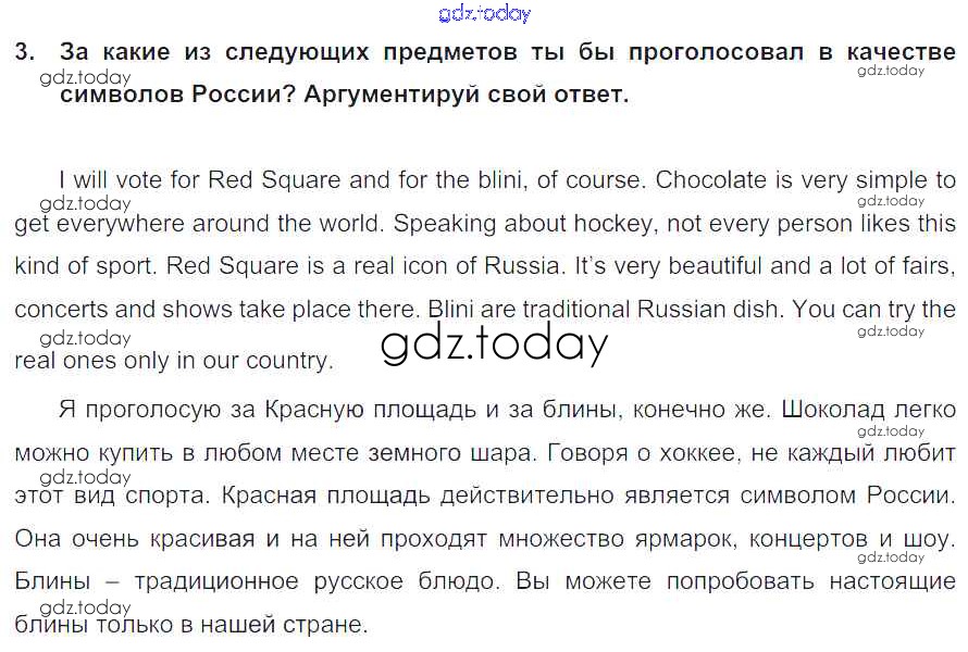 На страницах сайта gdz.today вы найдете учебный и вспомогательный материал, направленный на улучшения знаний школьной программы. ГДЗ - онлайн мир знаний Lesson 3 Решение к Unit 6. What is best about your country? 3 Учебнику по Английскому языку для 7 класса Кузовлев, Лапа Просвещение УМК 2015