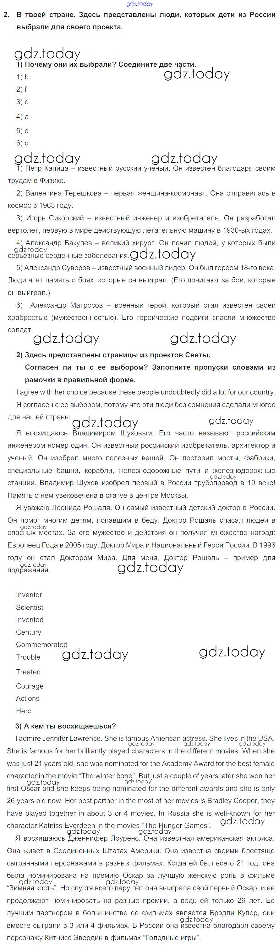 Ответы к Lesson 1 Решение к Unit 7. Do you have an example to follow? 2 Учебнику по Английскому языку для 7 класса Кузовлев, Лапа Просвещение УМК 2015