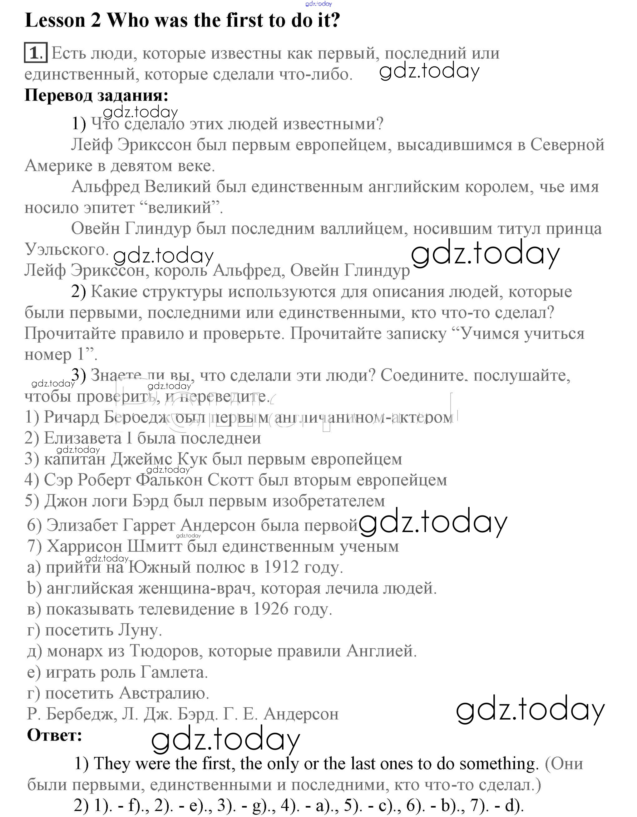 Ответы к Lesson 2 Решение к Unit 7. Do you have an example to follow? 1 Учебнику по Английскому языку для 7 класса Кузовлев, Лапа Просвещение УМК 2015