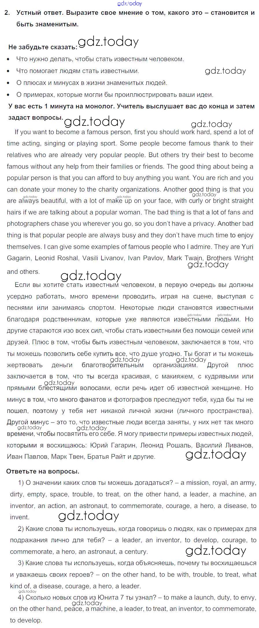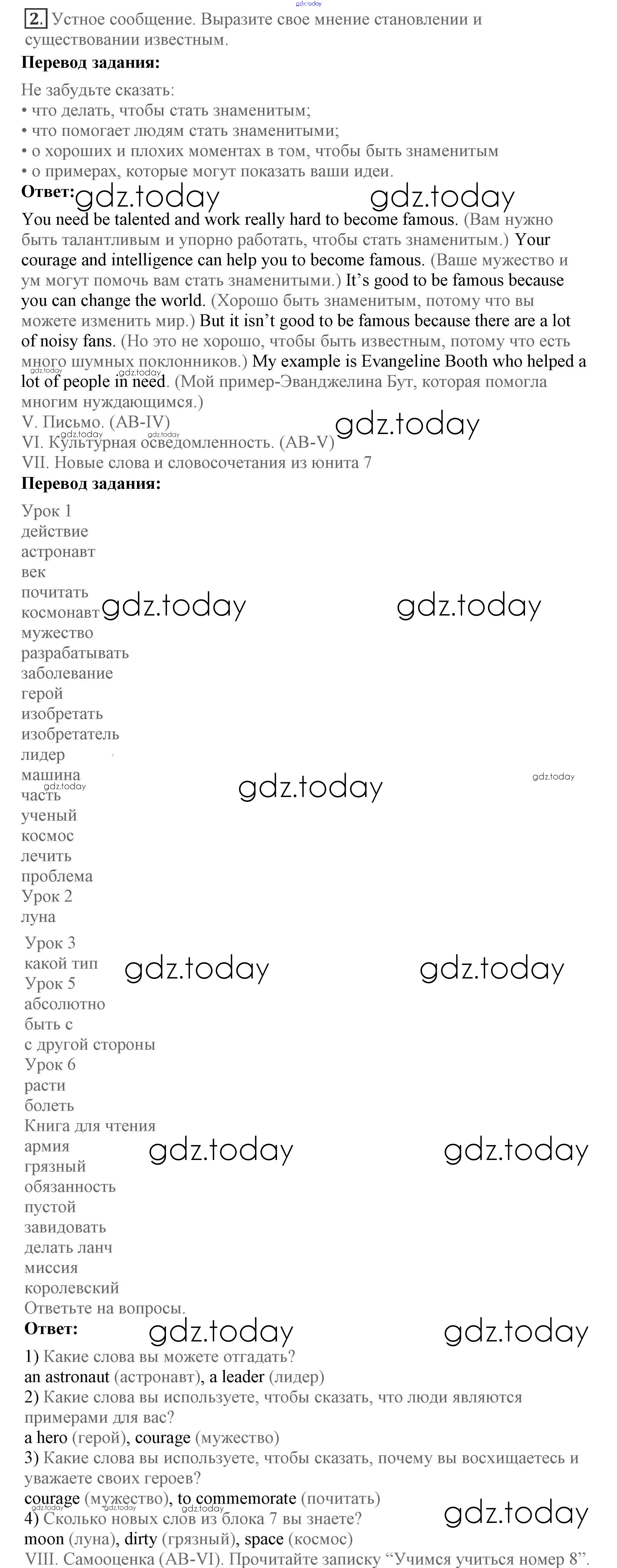 Ответы к Lesson 8 Решение к Unit 7. Do you have an example to follow? 2 Учебнику по Английскому языку для 7 класса Кузовлев, Лапа Просвещение УМК 2015