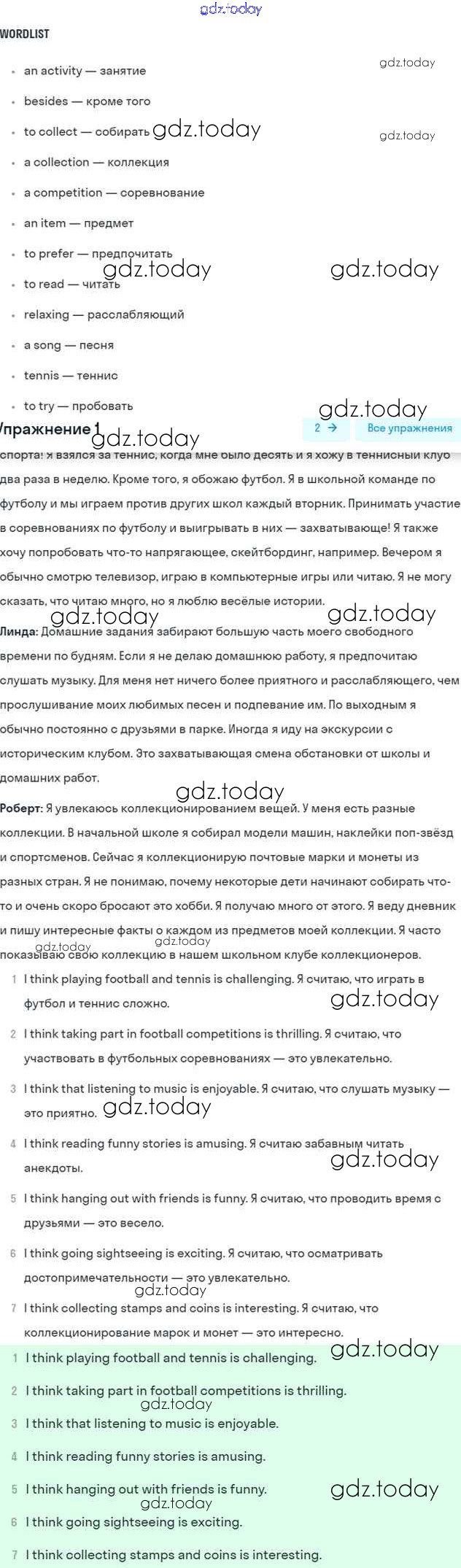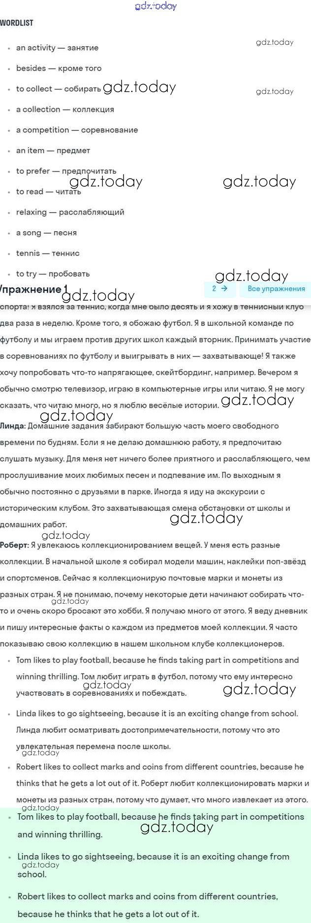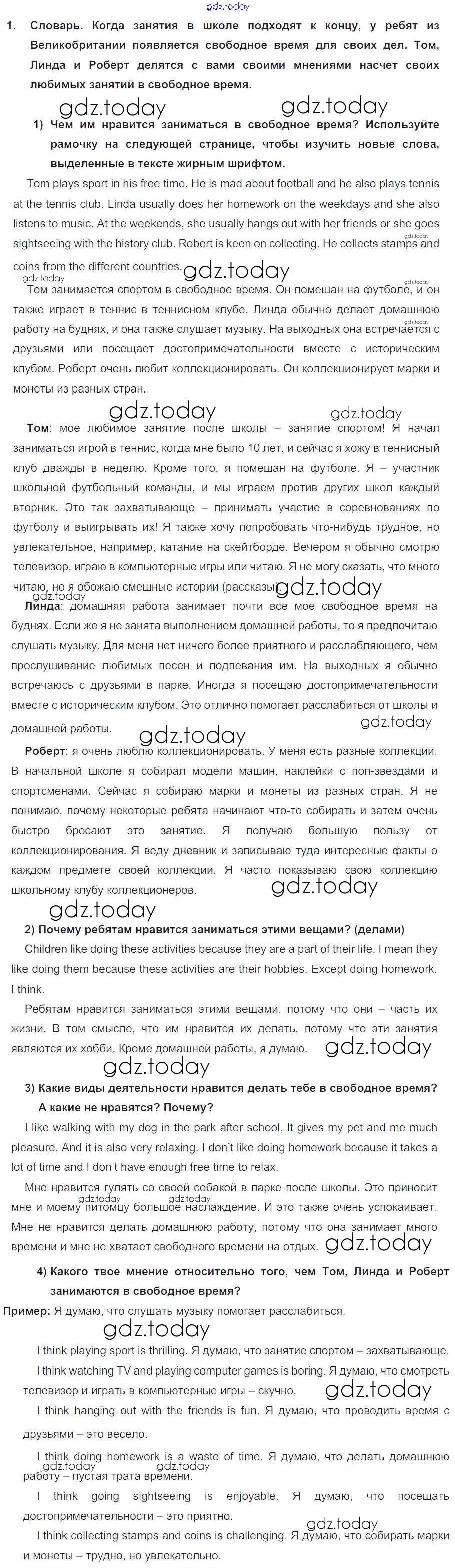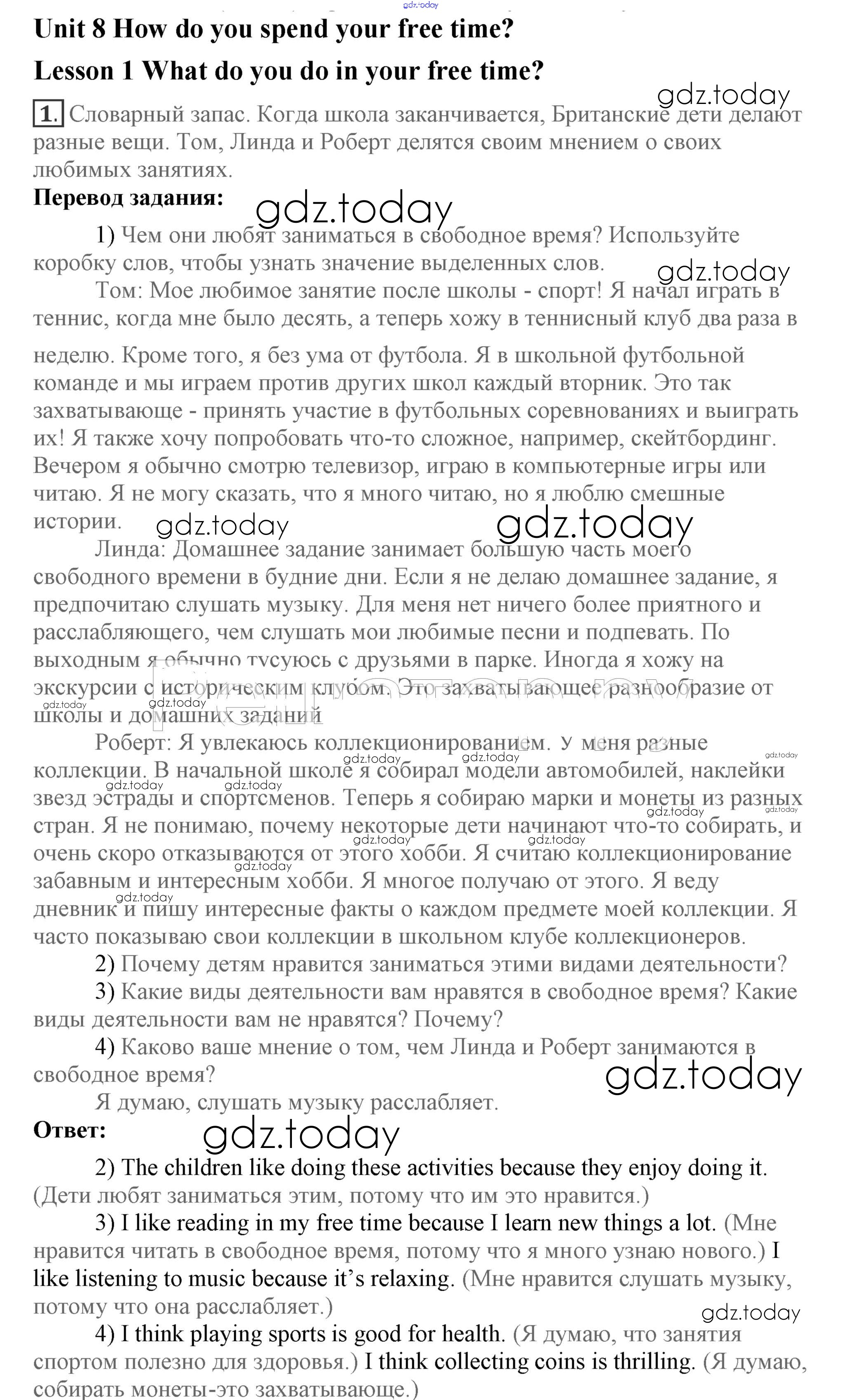 Ответы к Lesson 1 Решение к Unit 8. How do you spend your free time? 1 Учебнику по Английскому языку для 7 класса Кузовлев, Лапа Просвещение УМК 2015