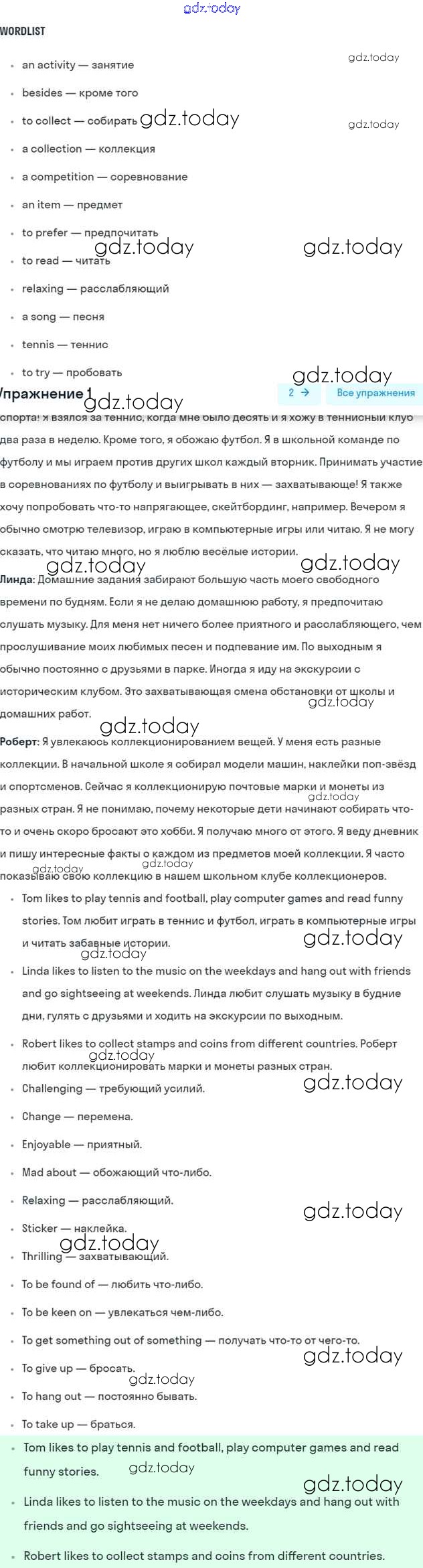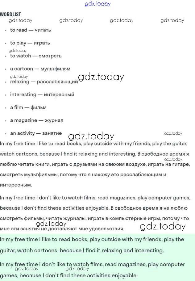 На страницах сайта gdz.today вы найдете учебный и вспомогательный материал, направленный на улучшения знаний школьной программы. ГДЗ - онлайн мир знаний Lesson 1 Решение к Unit 8. How do you spend your free time? 1 Учебнику по Английскому языку для 7 класса Кузовлев, Лапа Просвещение УМК 2015