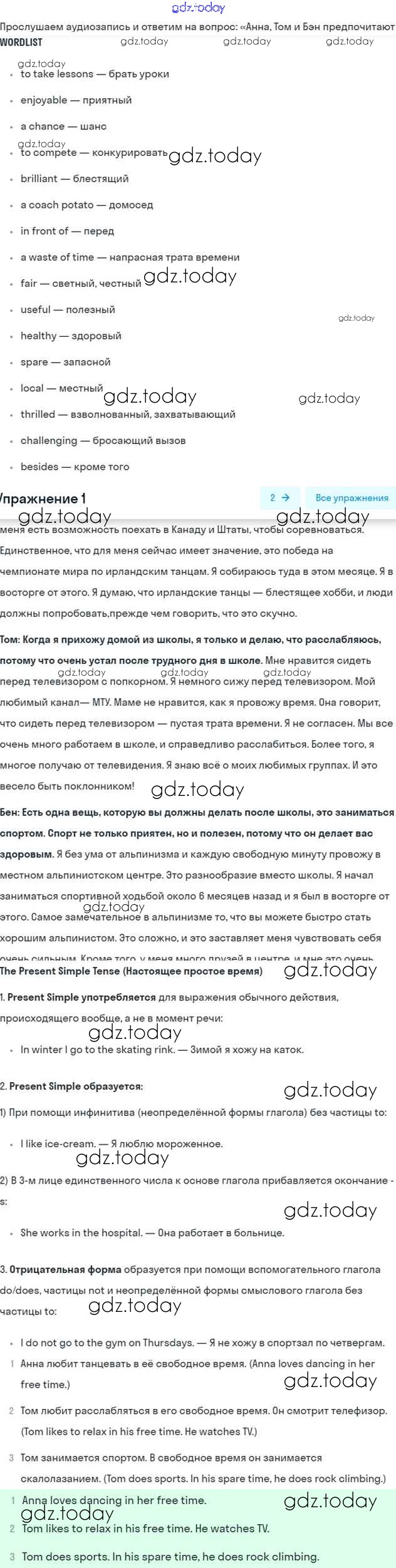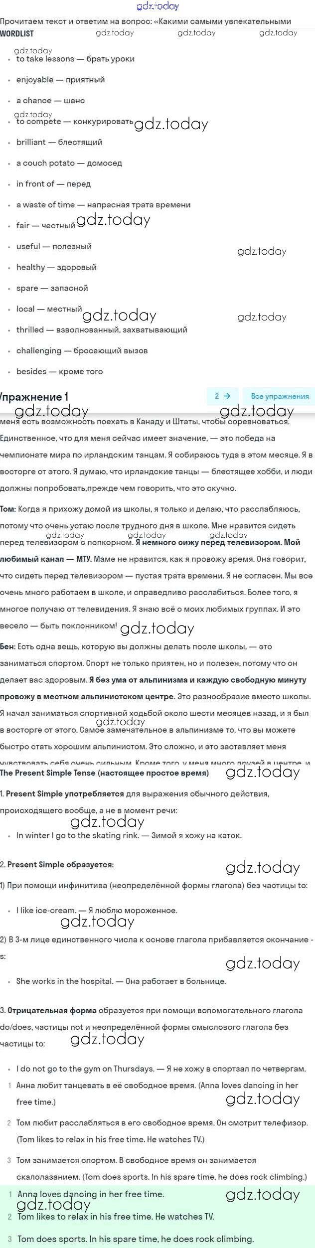 Решение к Unit 8. How do you spend your free time?