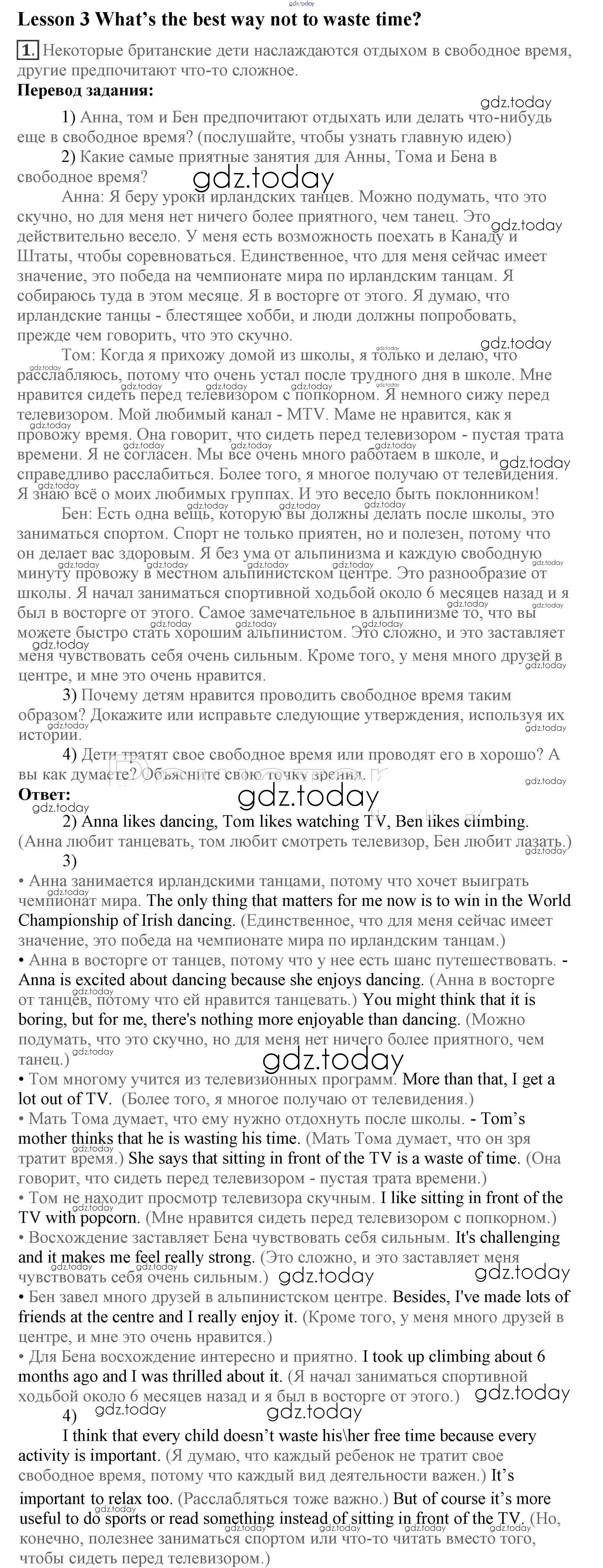 Ответы к Lesson 3 Решение к Unit 8. How do you spend your free time? 1 Учебнику по Английскому языку для 7 класса Кузовлев, Лапа Просвещение УМК 2015