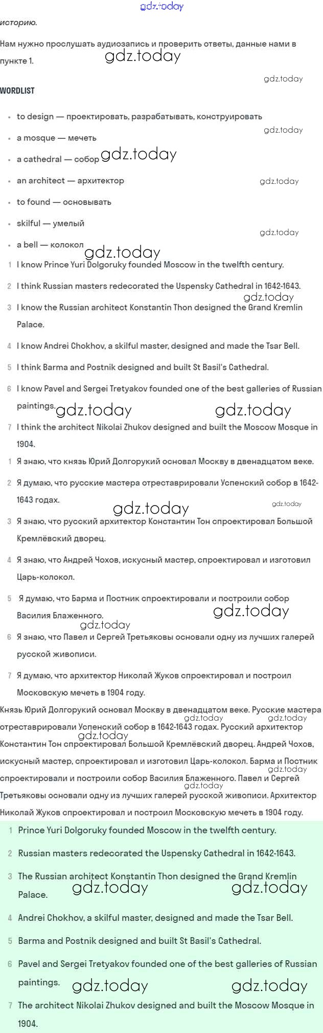 На страницах сайта gdz.today вы найдете учебный и вспомогательный материал, направленный на улучшения знаний школьной программы. ГДЗ - онлайн мир знаний Lesson 1 Решение к Unit 9. What are the most famous sights of your counry? 2 Учебнику по Английскому языку для 7 класса Кузовлев, Лапа Просвещение УМК 2015