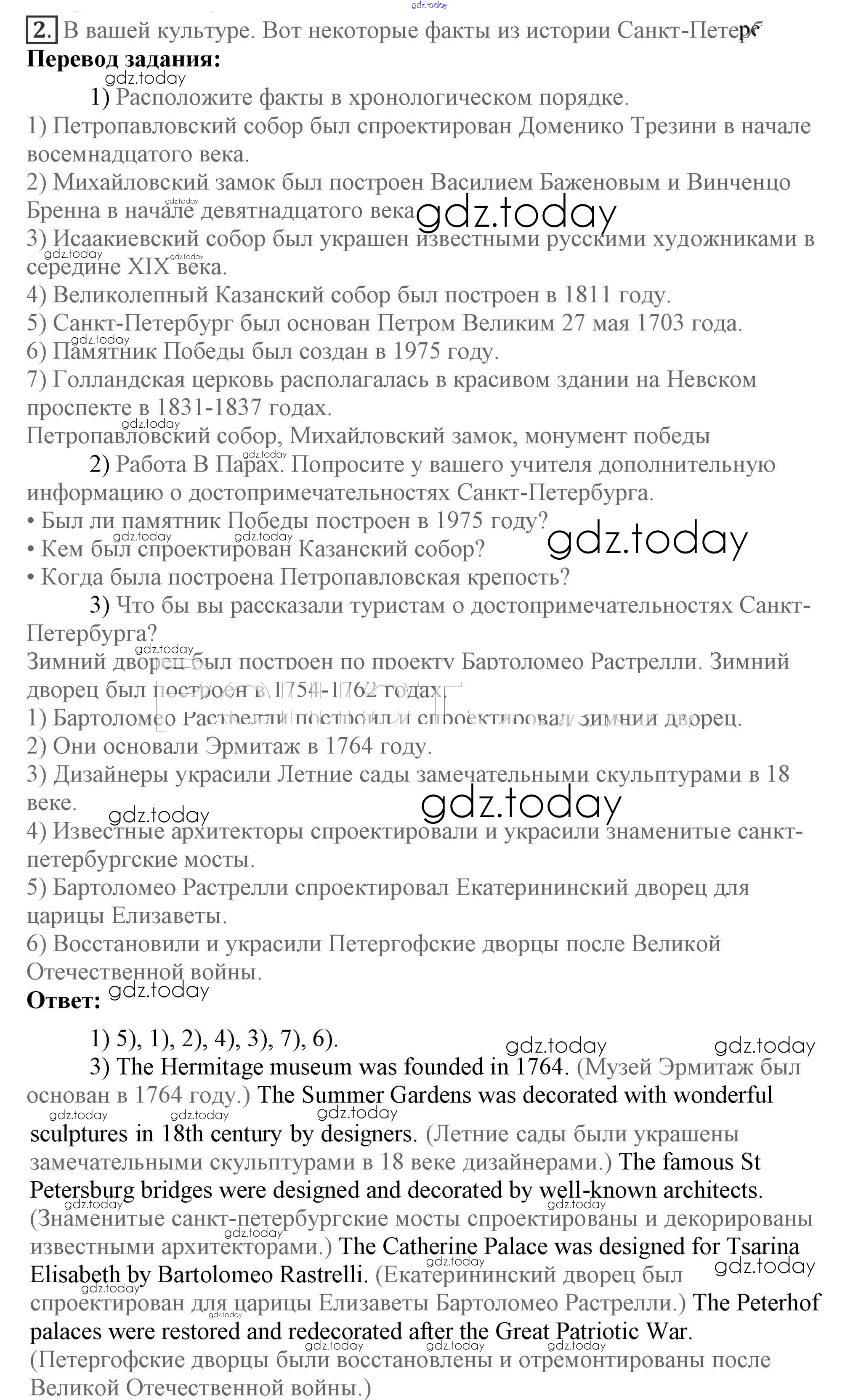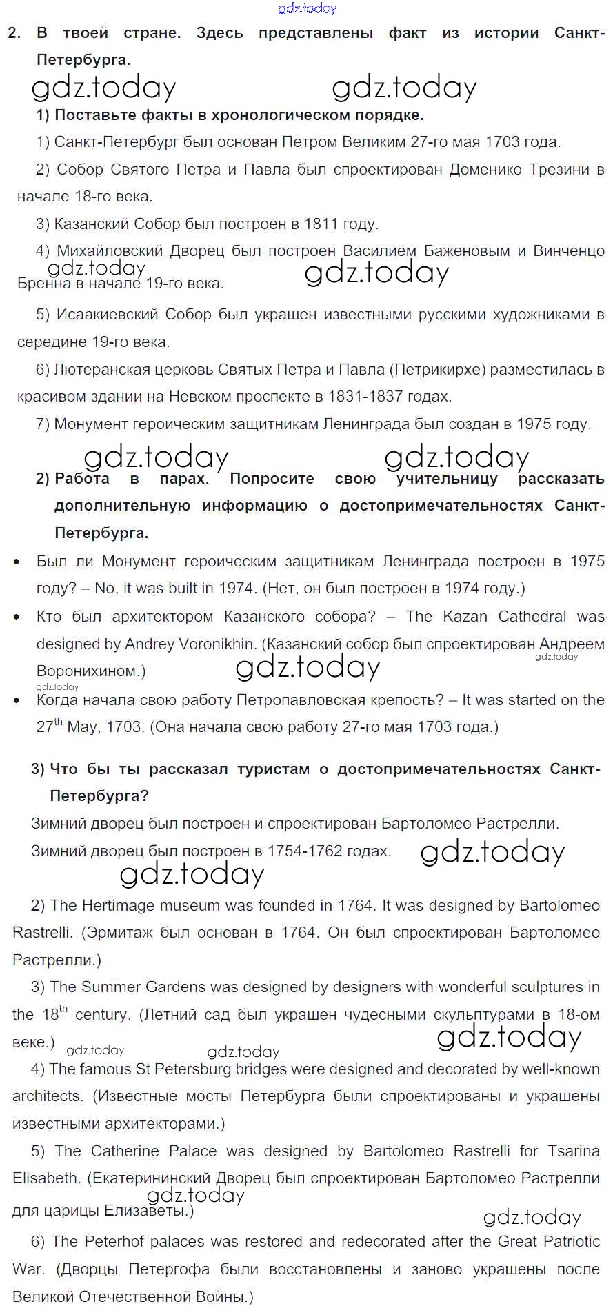 На страницах сайта gdz.today вы найдете учебный и вспомогательный материал, направленный на улучшения знаний школьной программы. ГДЗ - онлайн мир знаний Lesson 2 Решение к Unit 9. What are the most famous sights of your counry? 2 Учебнику по Английскому языку для 7 класса Кузовлев, Лапа Просвещение УМК 2015