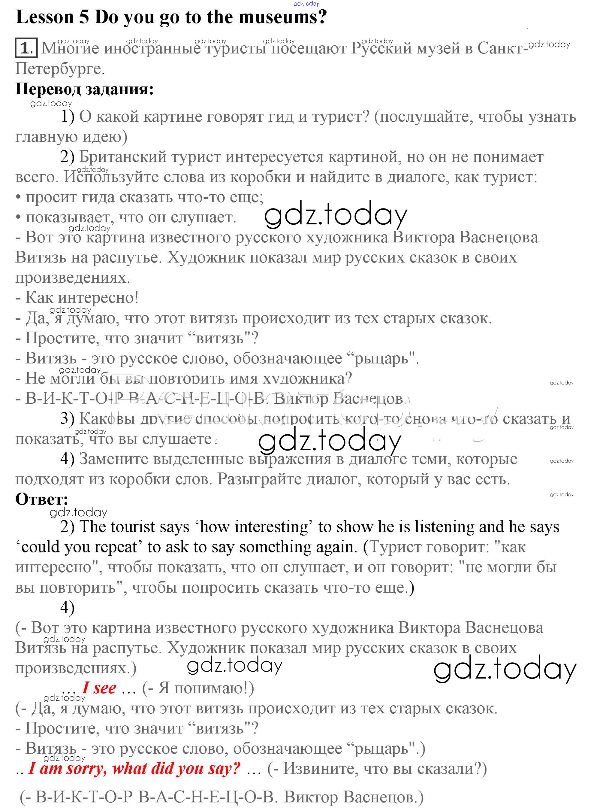 На страницах сайта gdz.today вы найдете учебный и вспомогательный материал, направленный на улучшения знаний школьной программы. ГДЗ - онлайн мир знаний Lesson 5 Решение к Unit 9. What are the most famous sights of your counry? 1 Учебнику по Английскому языку для 7 класса Кузовлев, Лапа Просвещение УМК 2015