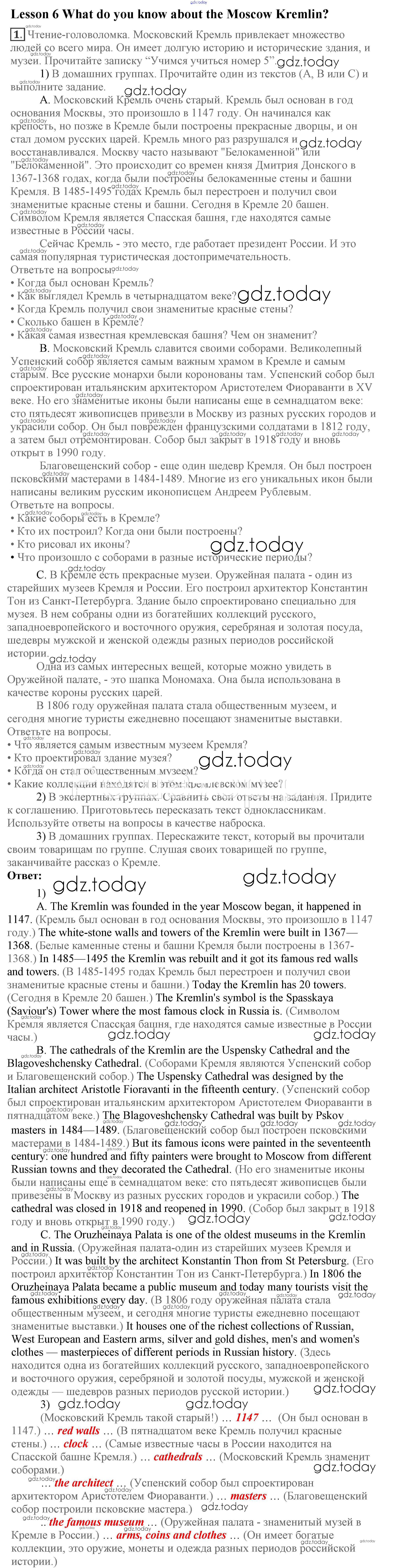 На страницах сайта gdz.today вы найдете учебный и вспомогательный материал, направленный на улучшения знаний школьной программы. ГДЗ - онлайн мир знаний Lesson 6 Решение к Unit 9. What are the most famous sights of your counry? 1 Учебнику по Английскому языку для 7 класса Кузовлев, Лапа Просвещение УМК 2015