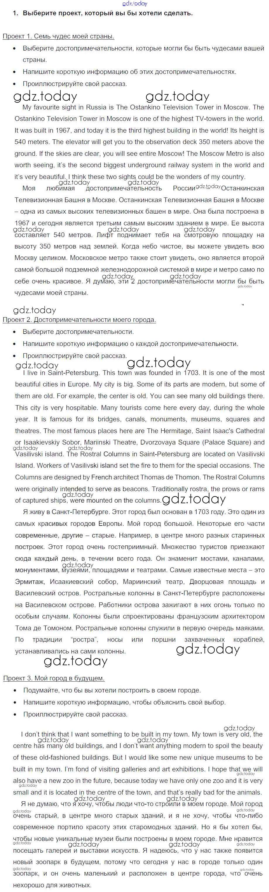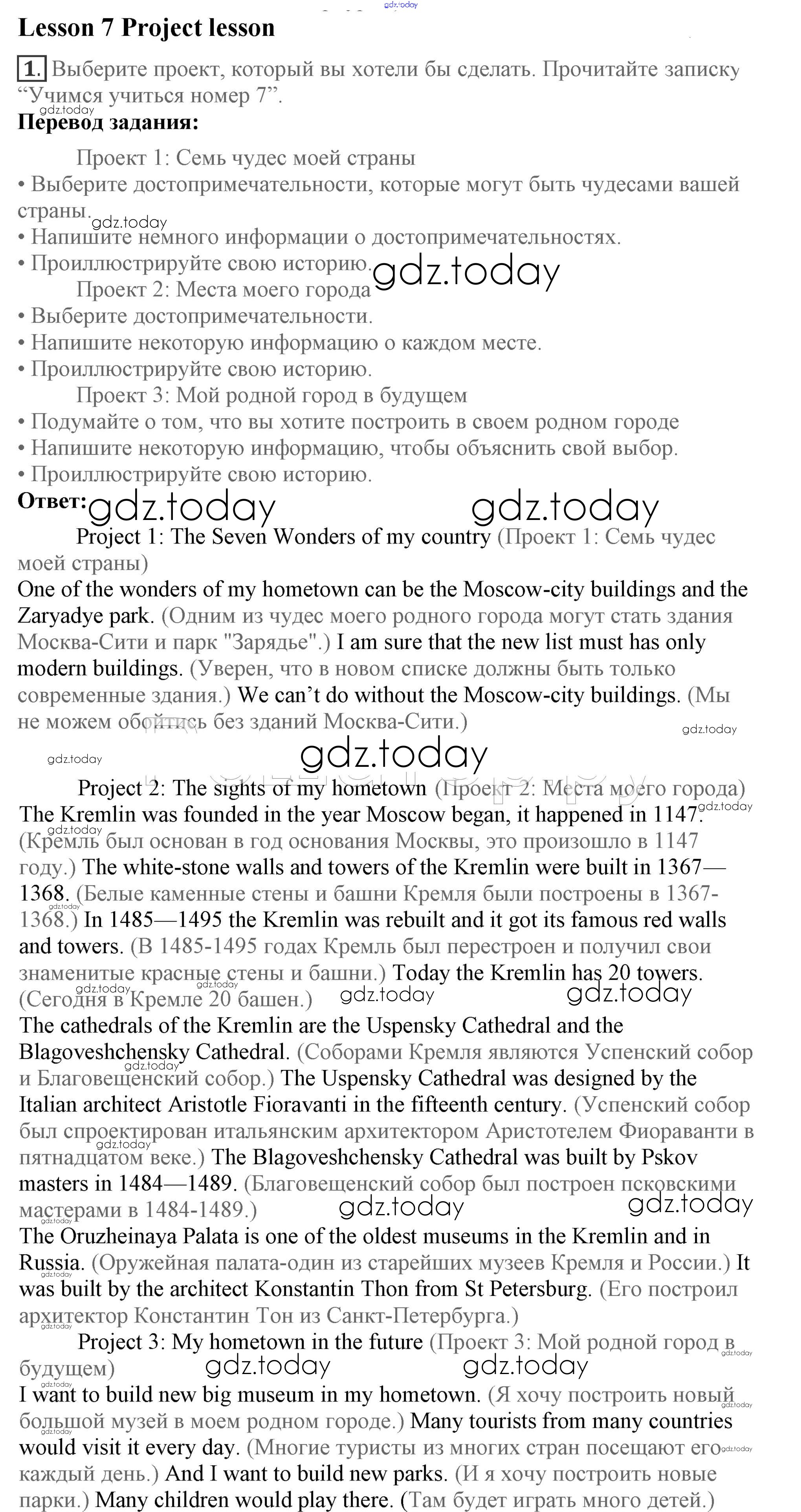 Ответы к Lesson 7 Решение к Unit 9. What are the most famous sights of your counry? 1 Учебнику по Английскому языку для 7 класса Кузовлев, Лапа Просвещение УМК 2015
