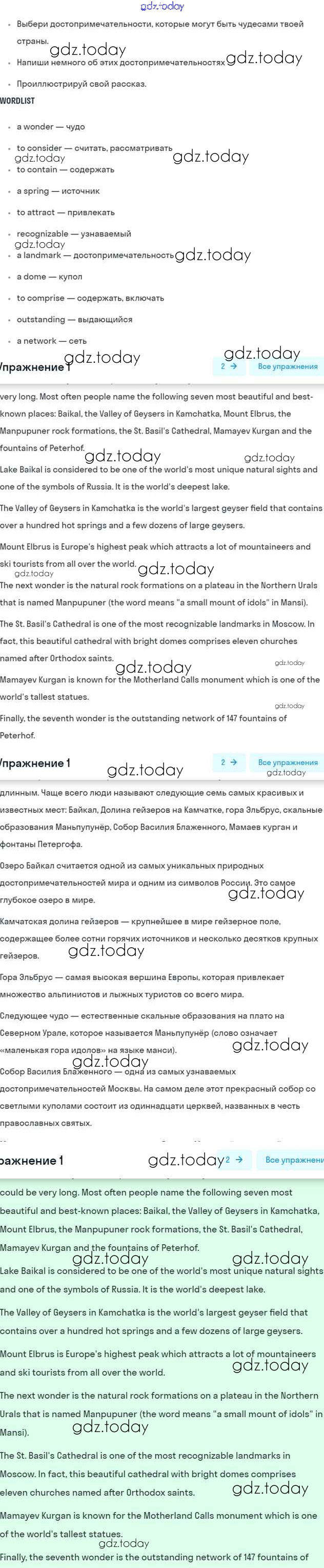 На страницах сайта gdz.today вы найдете учебный и вспомогательный материал, направленный на улучшения знаний школьной программы. ГДЗ - онлайн мир знаний Lesson 7 Решение к Unit 9. What are the most famous sights of your counry? 1 Учебнику по Английскому языку для 7 класса Кузовлев, Лапа Просвещение УМК 2015