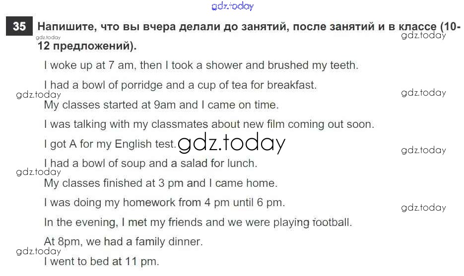 На страницах сайта gdz.today вы найдете учебный и вспомогательный материал, направленный на улучшения знаний школьной программы. ГДЗ - онлайн мир знаний Решение к Unit 1 35 Рабочей тетради по Английскому языку для 7 класса Афанасьева, Михеева Дрофа Rainbow 2019