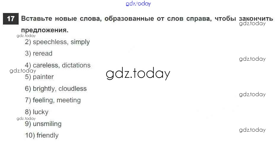 На страницах сайта gdz.today вы найдете учебный и вспомогательный материал, направленный на улучшения знаний школьной программы. ГДЗ - онлайн мир знаний Решение к Unit 2 17 Рабочей тетради по Английскому языку для 7 класса Афанасьева, Михеева Дрофа Rainbow 2019