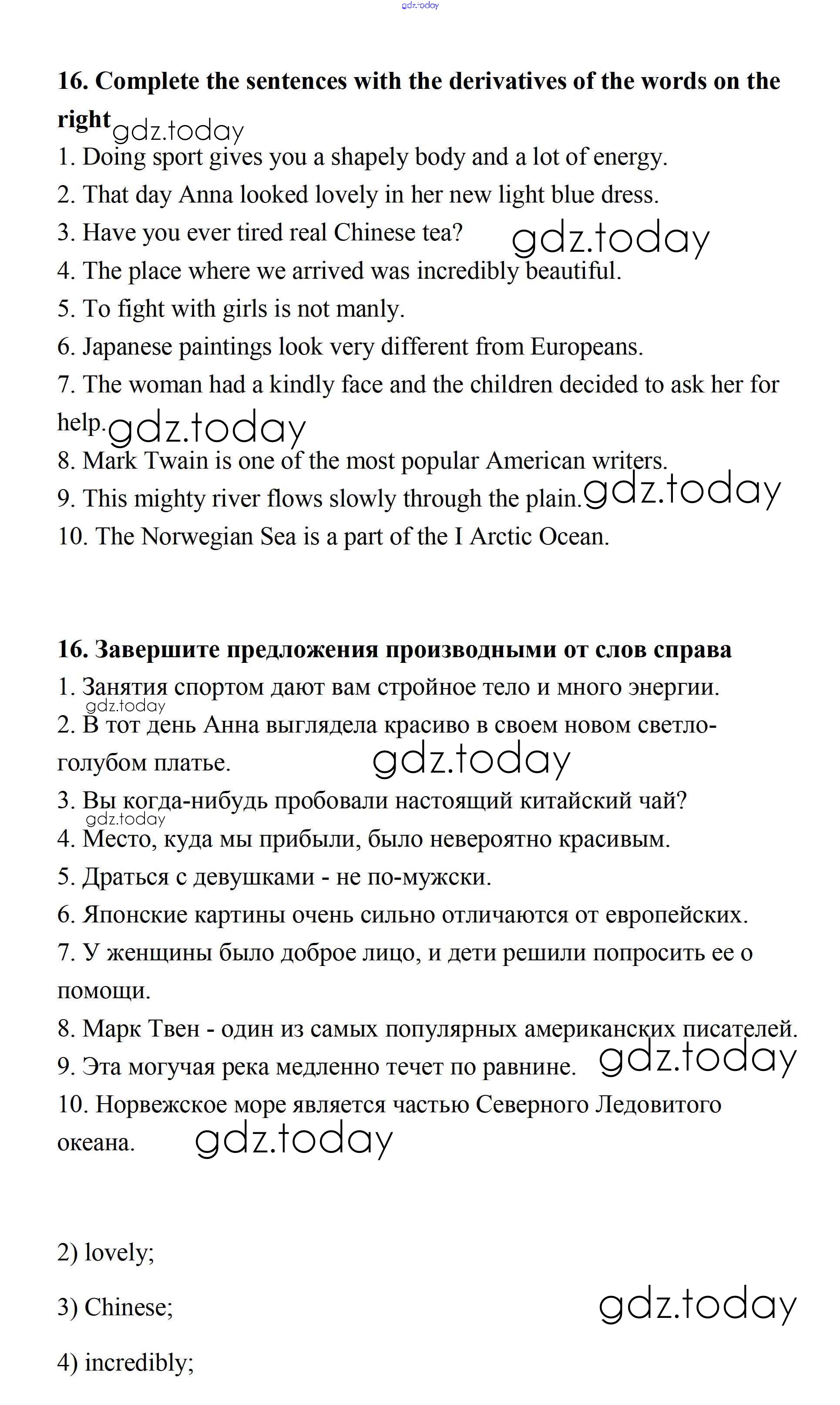 Ответы к Решение к Unit 3 16 Рабочей тетради по Английскому языку для 7 класса Афанасьева, Михеева Дрофа Rainbow 2019