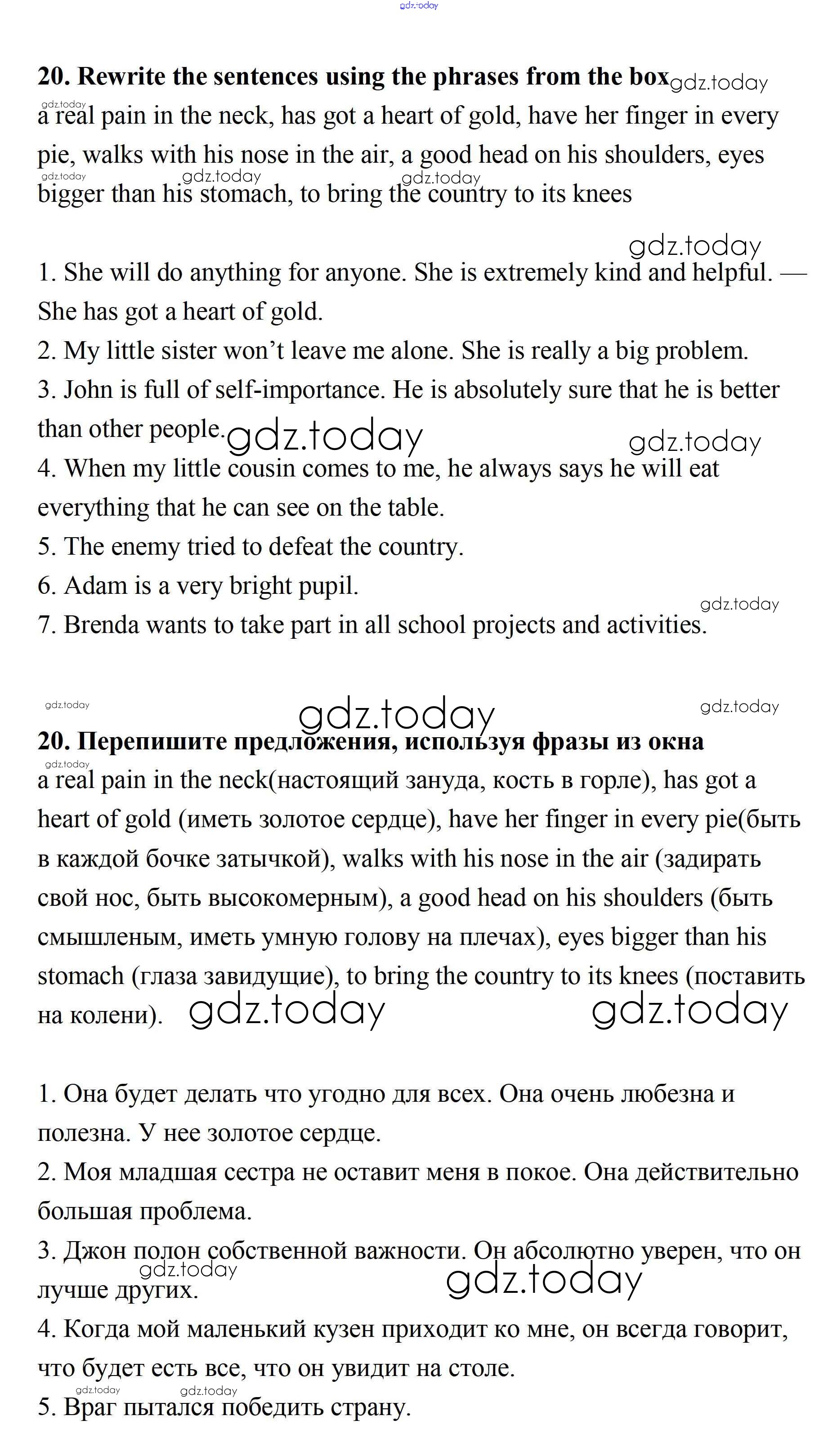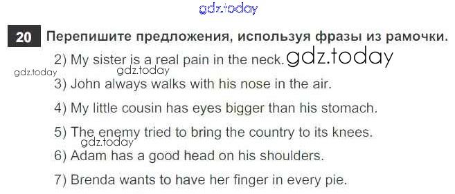 На страницах сайта gdz.today вы найдете учебный и вспомогательный материал, направленный на улучшения знаний школьной программы. ГДЗ - онлайн мир знаний Решение к Unit 6 20 Рабочей тетради по Английскому языку для 7 класса Афанасьева, Михеева Дрофа Rainbow 2019
