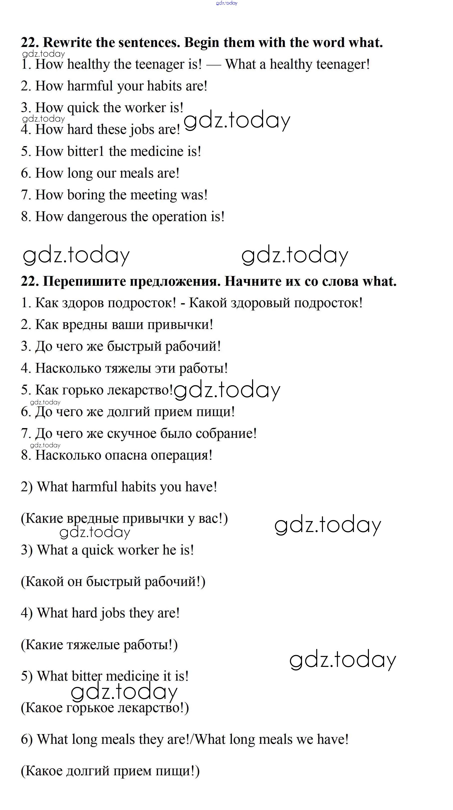 На страницах сайта gdz.today вы найдете учебный и вспомогательный материал, направленный на улучшения знаний школьной программы. ГДЗ - онлайн мир знаний Решение к Unit 6 22 Рабочей тетради по Английскому языку для 7 класса Афанасьева, Михеева Дрофа Rainbow 2019