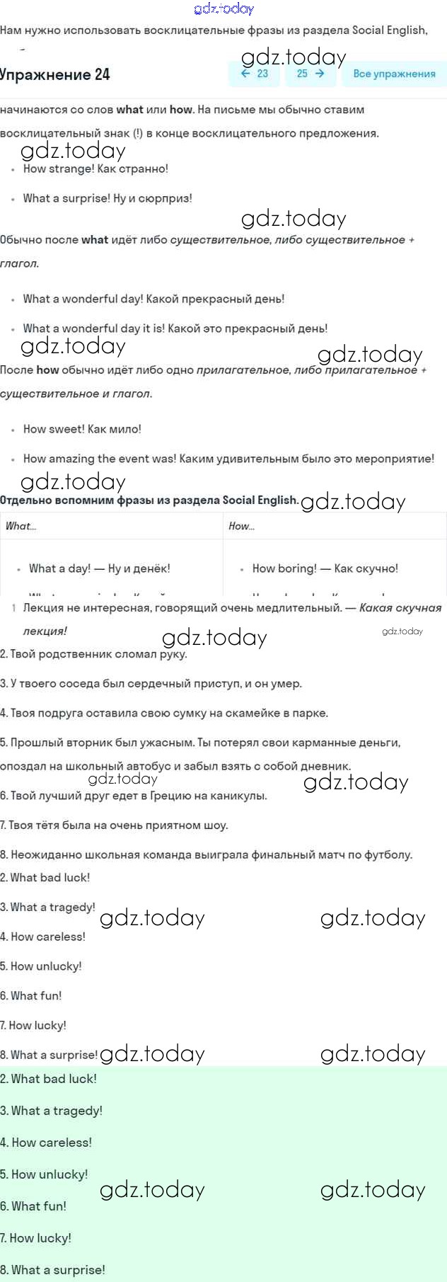 На страницах сайта gdz.today вы найдете учебный и вспомогательный материал, направленный на улучшения знаний школьной программы. ГДЗ - онлайн мир знаний Решение к Unit 6 24 Рабочей тетради по Английскому языку для 7 класса Афанасьева, Михеева Дрофа Rainbow 2019