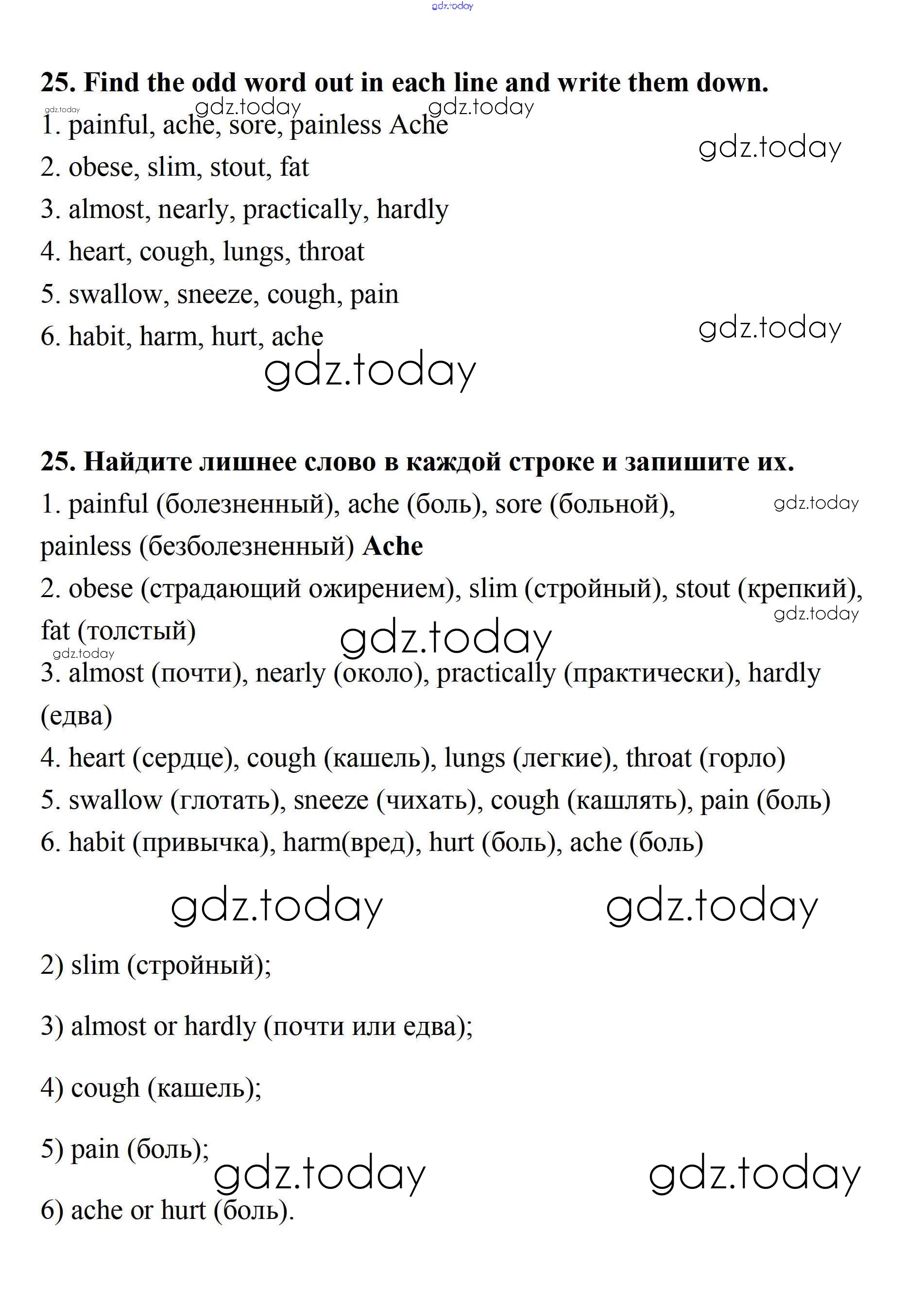 На страницах сайта gdz.today вы найдете учебный и вспомогательный материал, направленный на улучшения знаний школьной программы. ГДЗ - онлайн мир знаний Решение к Unit 6 25 Рабочей тетради по Английскому языку для 7 класса Афанасьева, Михеева Дрофа Rainbow 2019