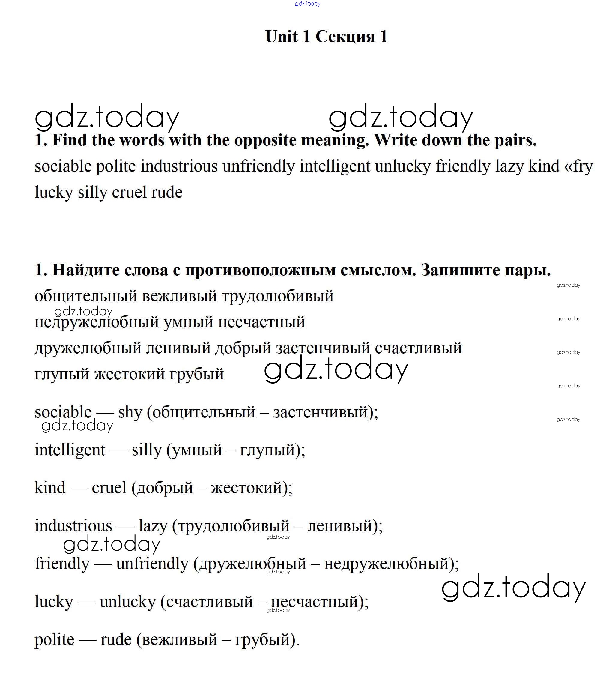 На страницах сайта gdz.today вы найдете учебный и вспомогательный материал, направленный на улучшения знаний школьной программы. ГДЗ - онлайн мир знаний Секция 1 Решение к Unit 1 1 Рабочей тетради по Английскому языку для 7 класса Биболетова, Бабушис Титул Enjoy English 2015