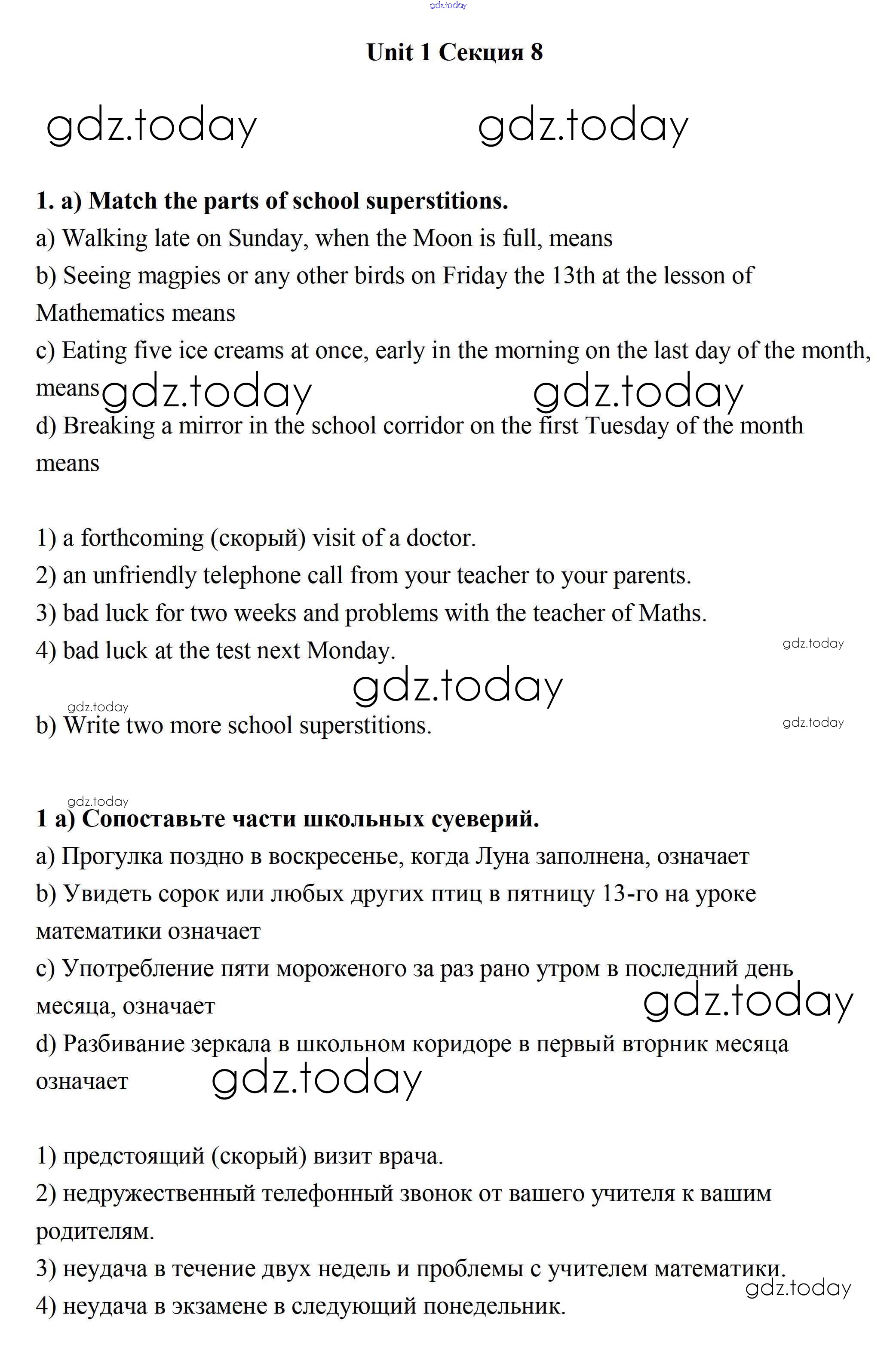 Ответы к Секция 8 Решение к Unit 1 1 Рабочей тетради по Английскому языку для 7 класса Биболетова, Бабушис Титул Enjoy English 2015